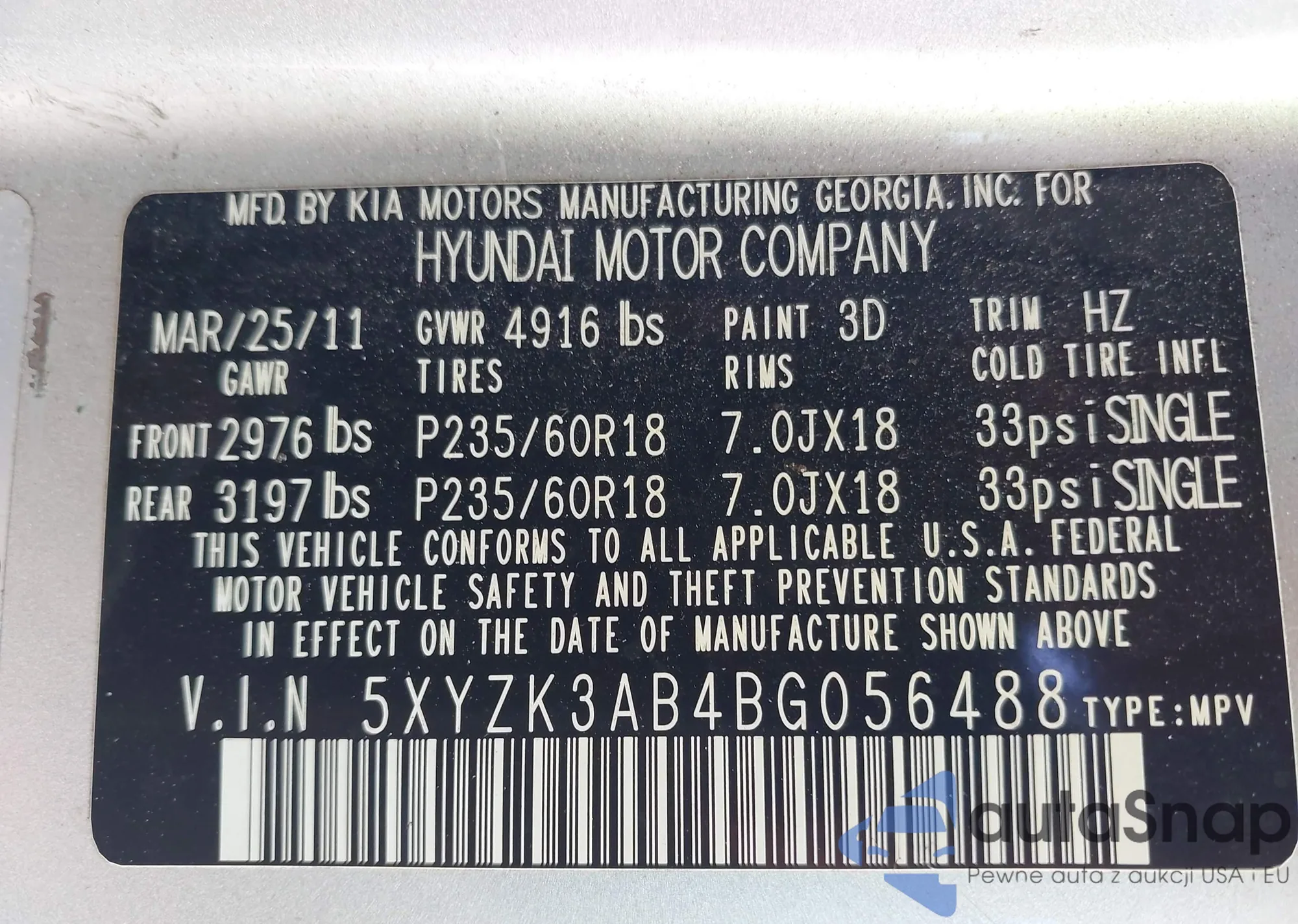 • VIN 5XYZK3AB4BG056488