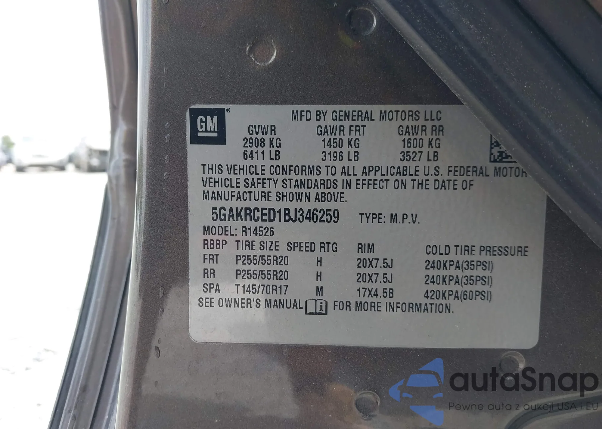 LOT: 42083463 VIN: 5GAKRCED1BJ346259