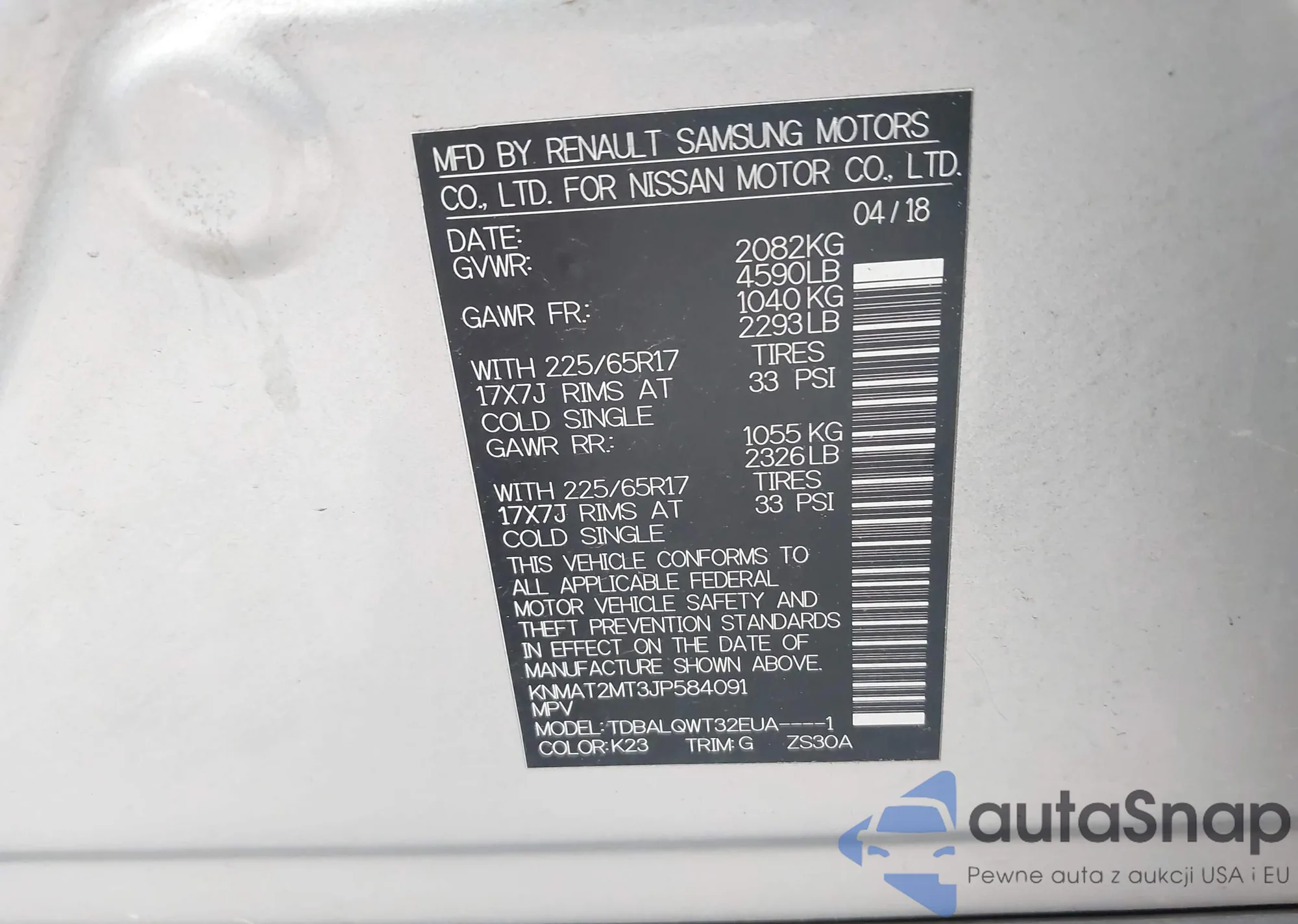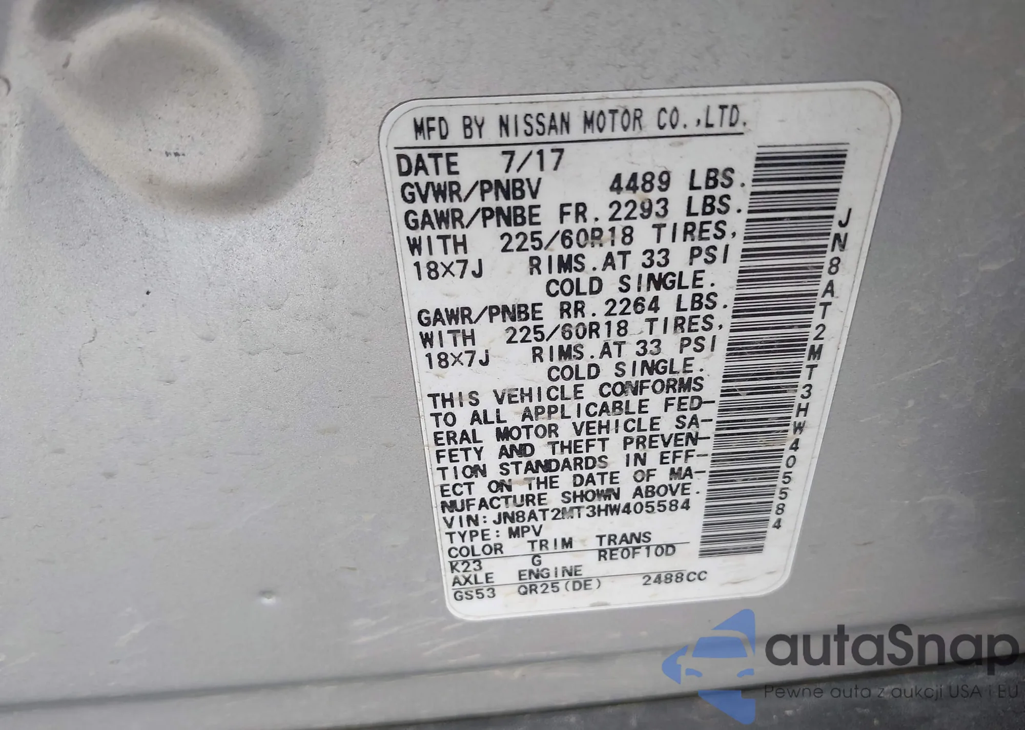 LOT: 41924834 VIN: JN8AT2MT3HW405584