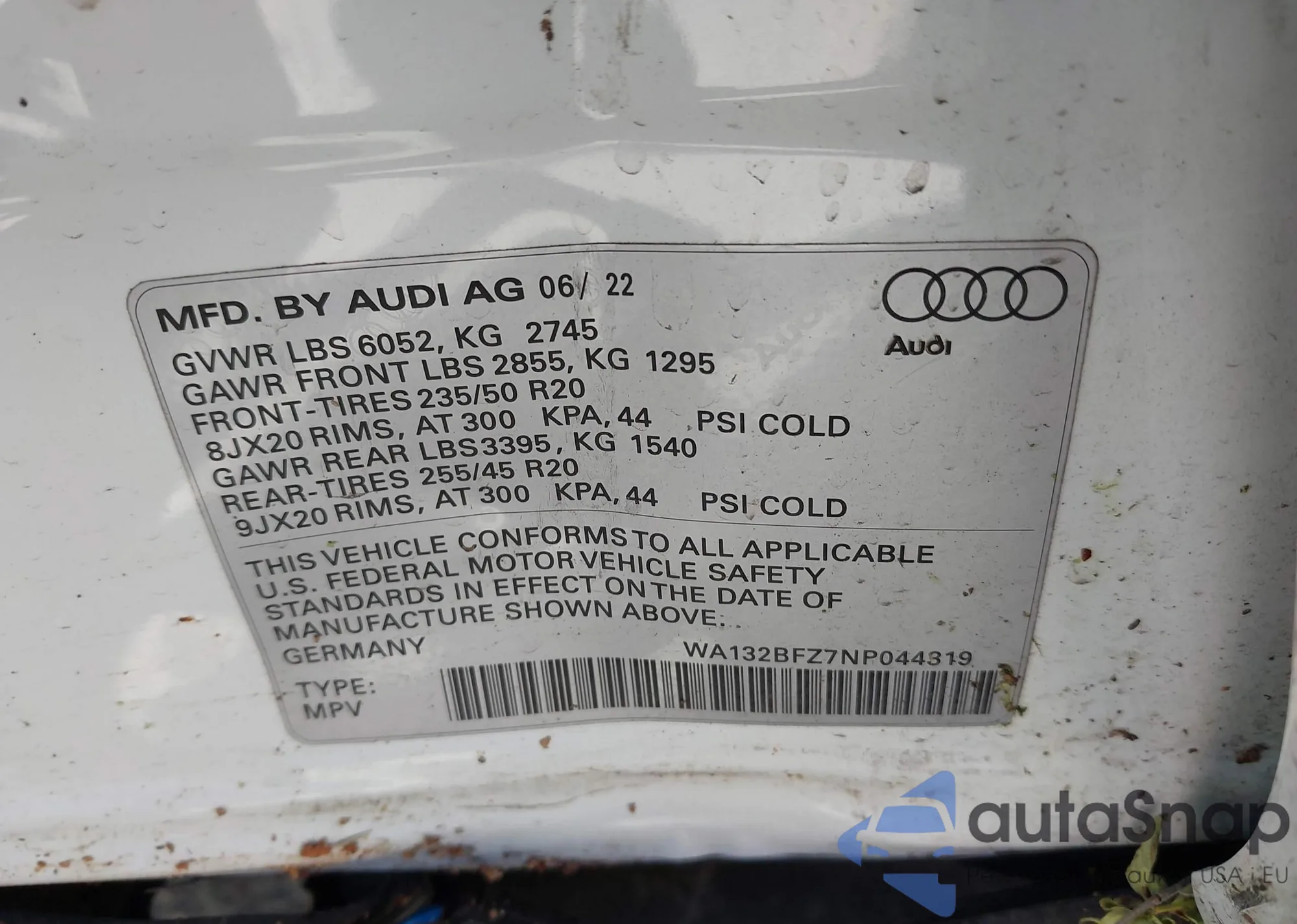 • VIN WA132BFZ7NP044319