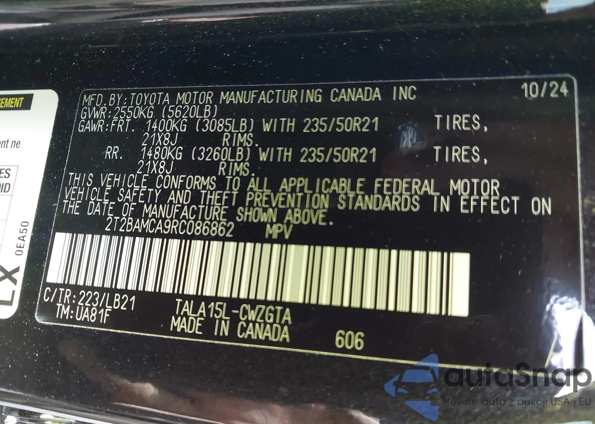 • VIN 2T2BAMCA9RC086862