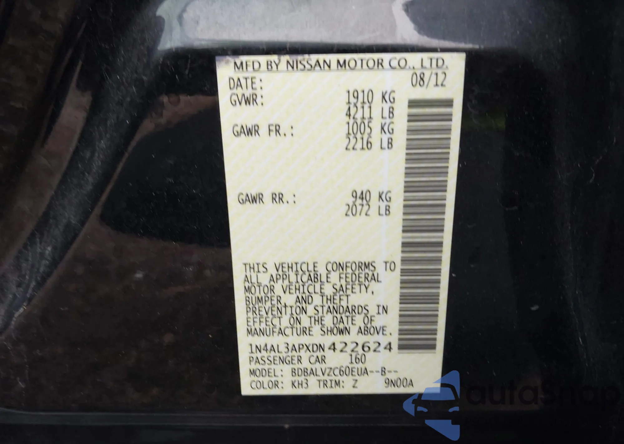 LOT: 42363822 VIN: 1N4AL21E88N453322