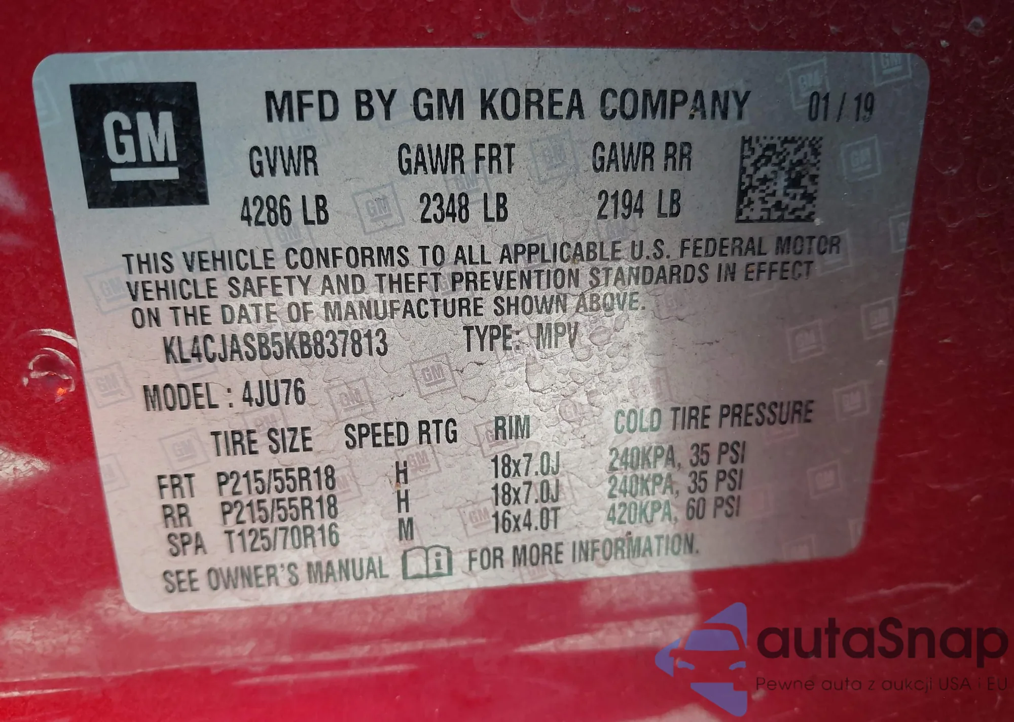 • VIN KL4CJASB5KB837813