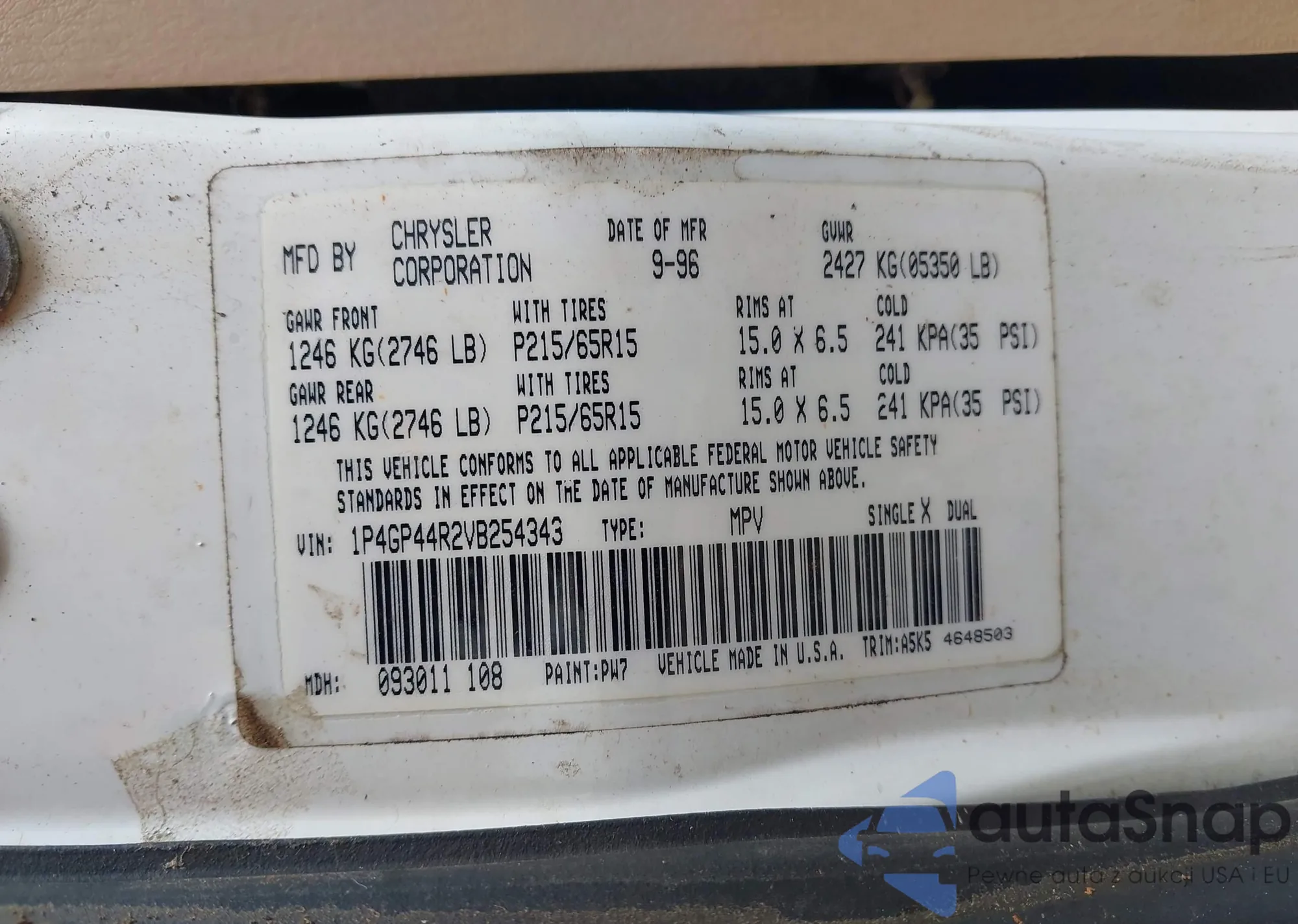 • VIN 1P4GP44R2VB254343