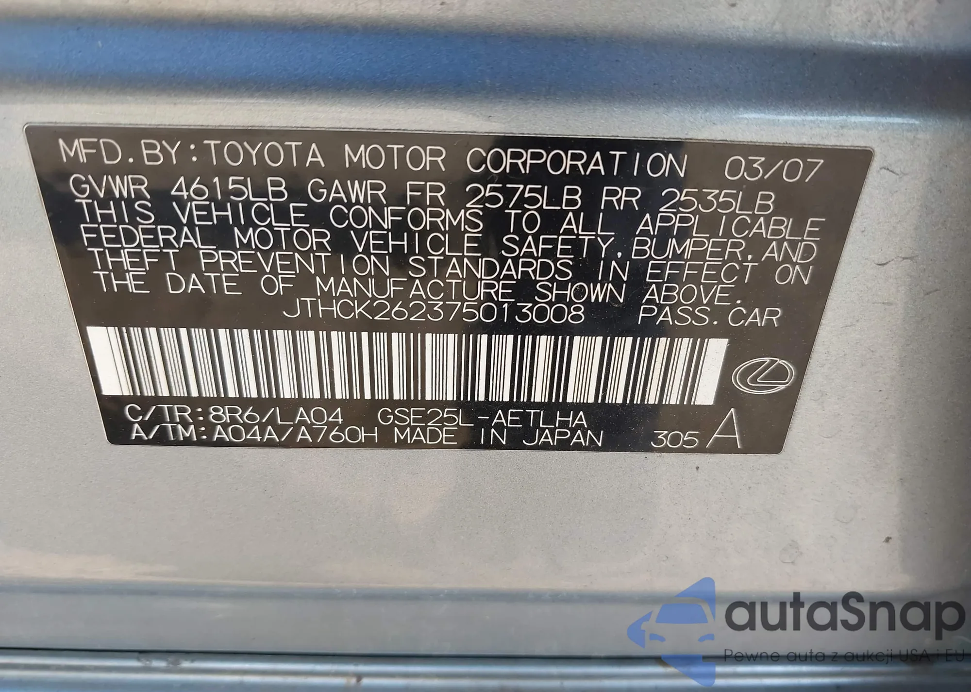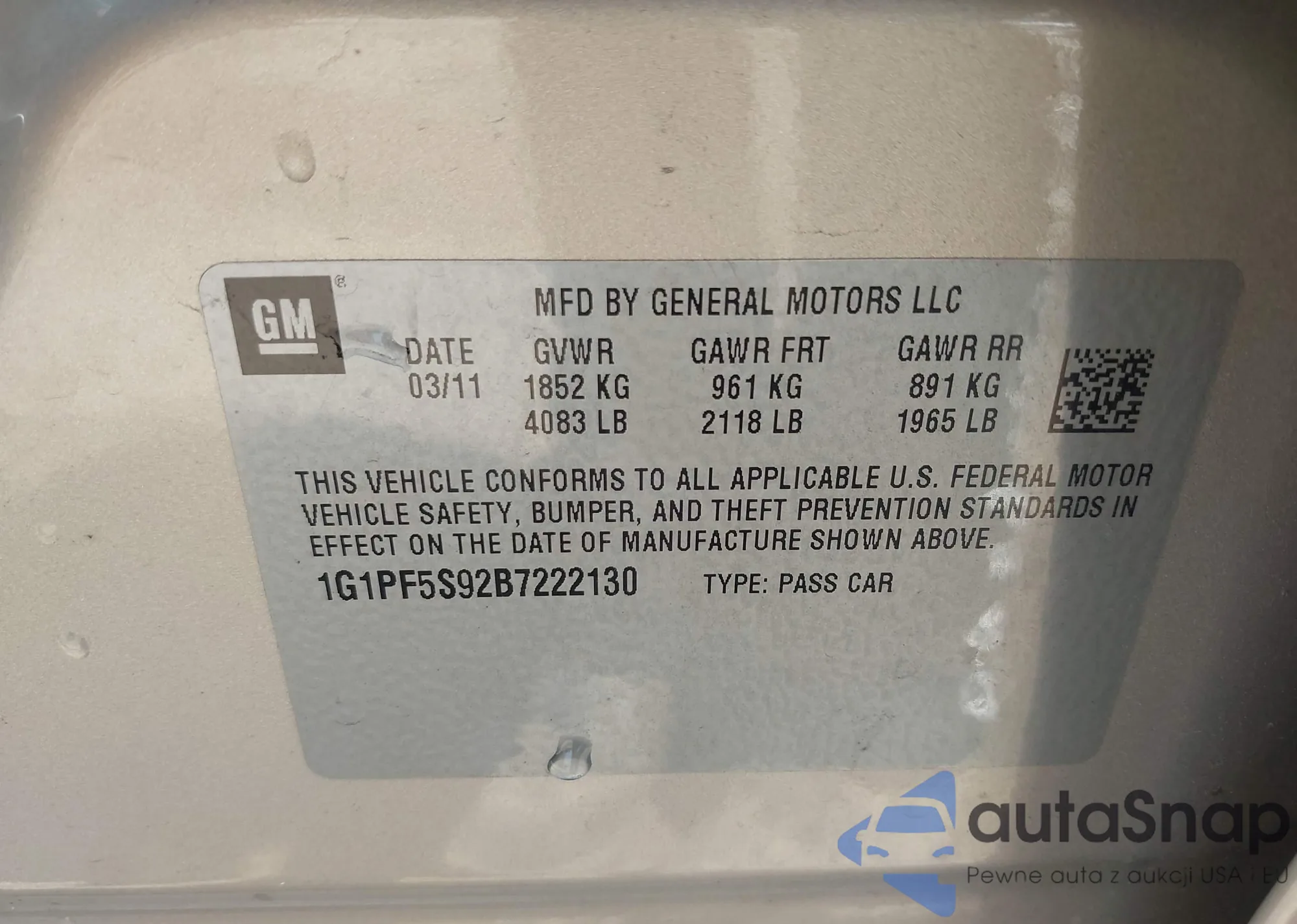 LOT: 42190738 VIN: 1G1PF5S92B7222130