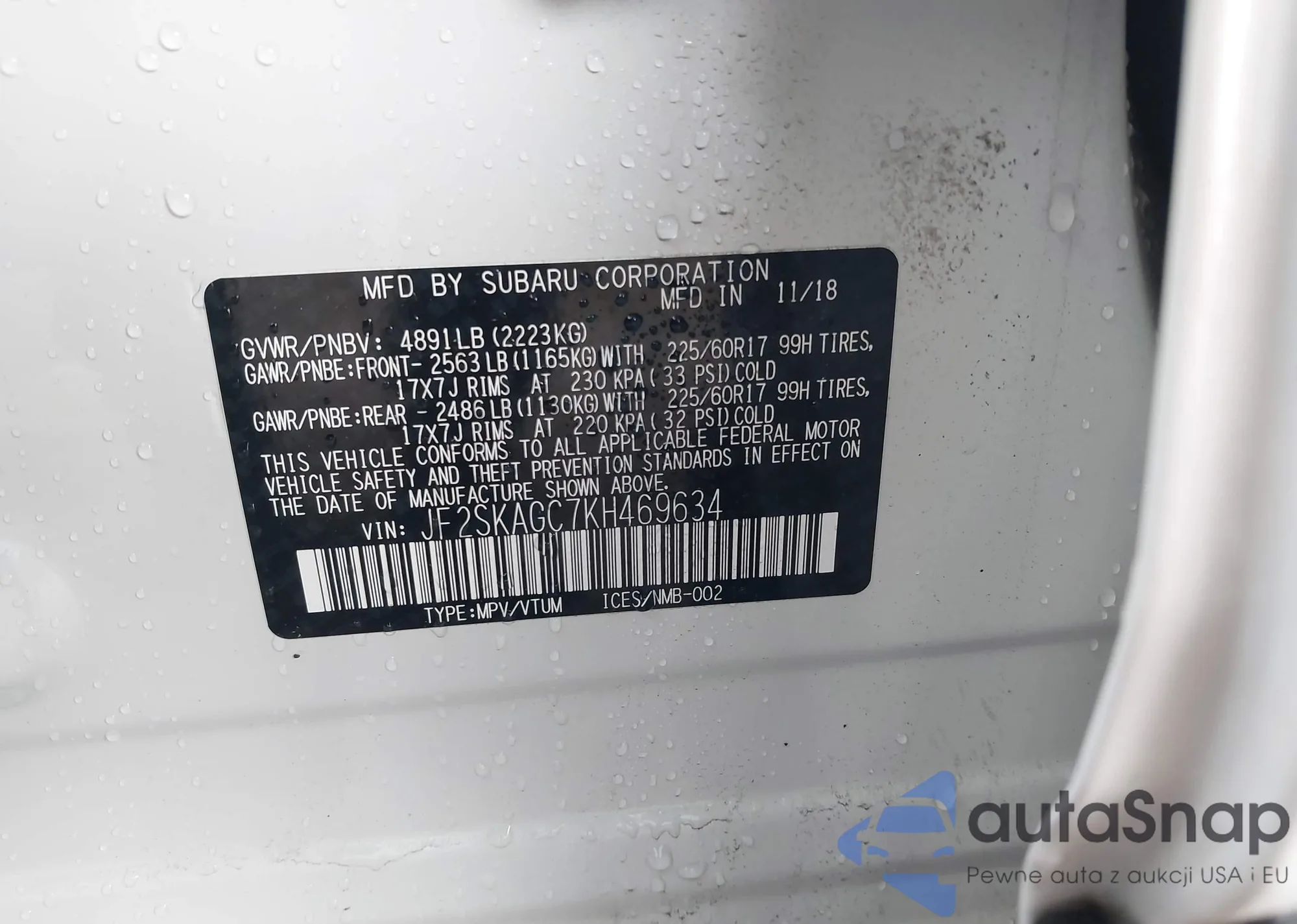 • VIN JF2SKAGC7KH469634