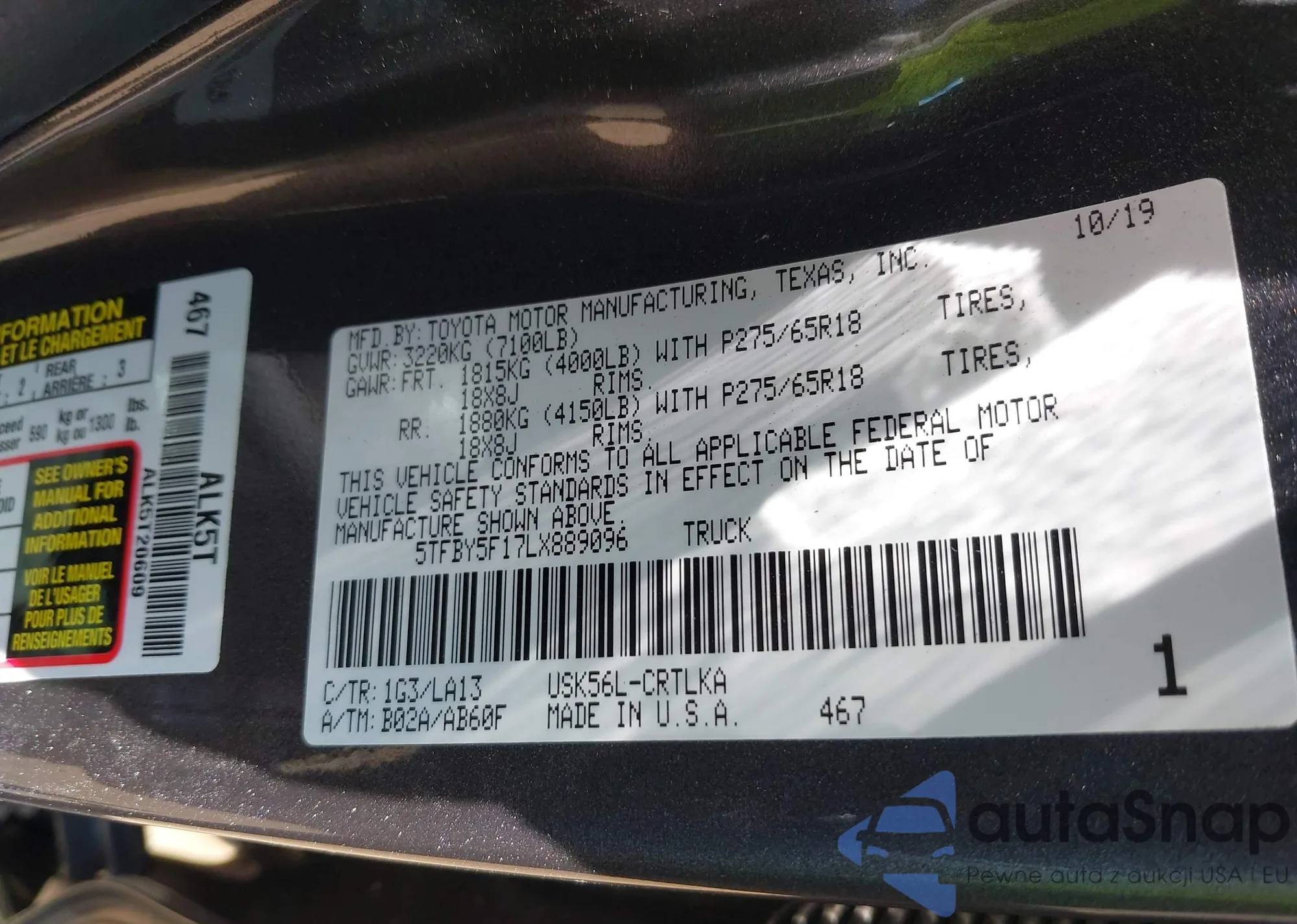 • VIN 5TFBY5F17LX889096