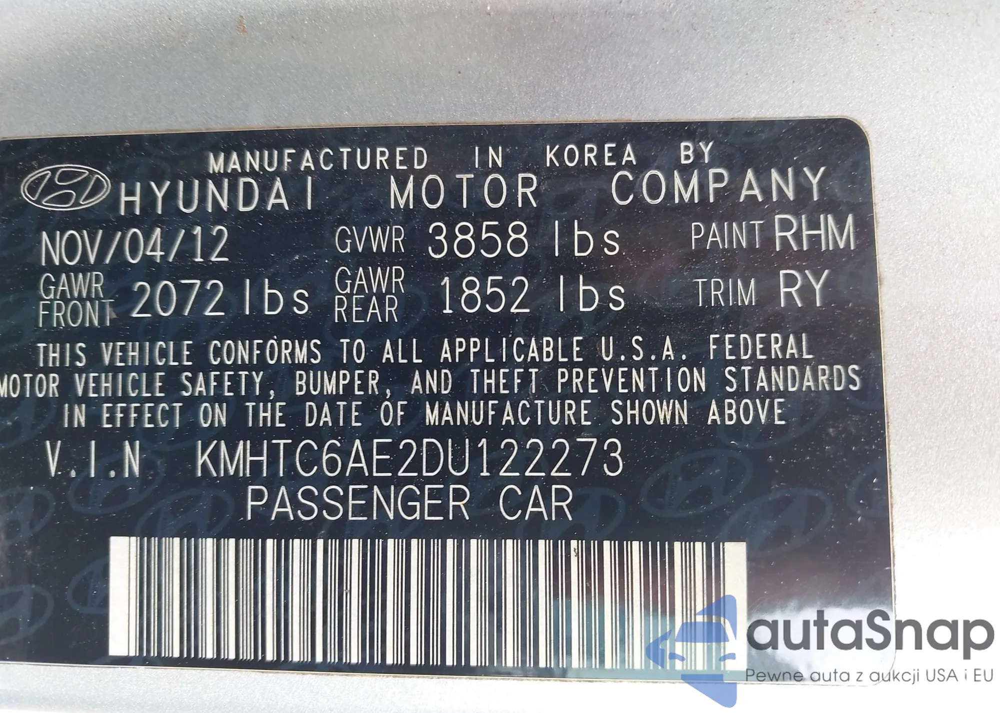 LOT: 42204828 VIN: 1N4AL2AP2AC143086