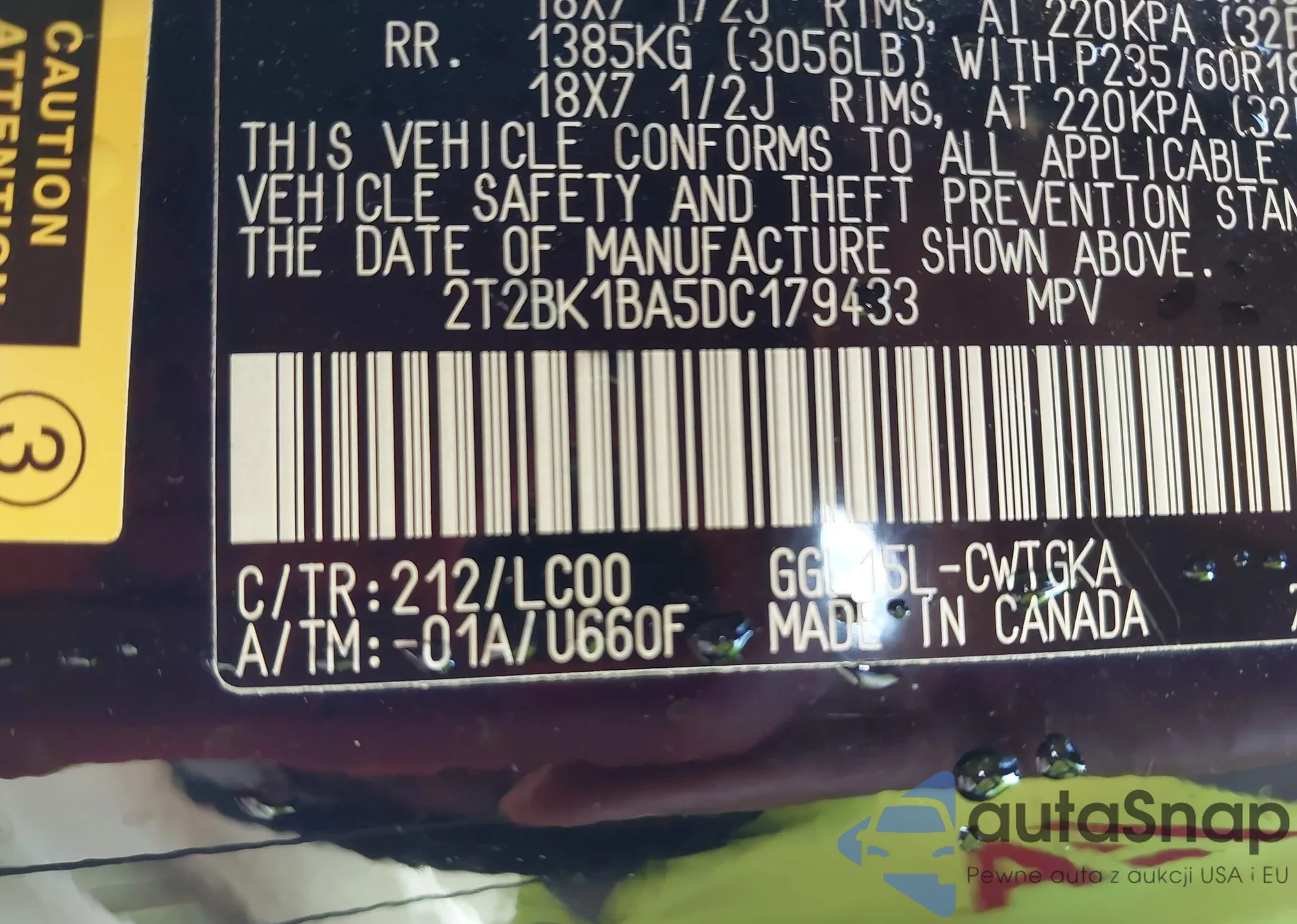 LOT: 42186878 VIN: 2T2BK1BA5DC179433