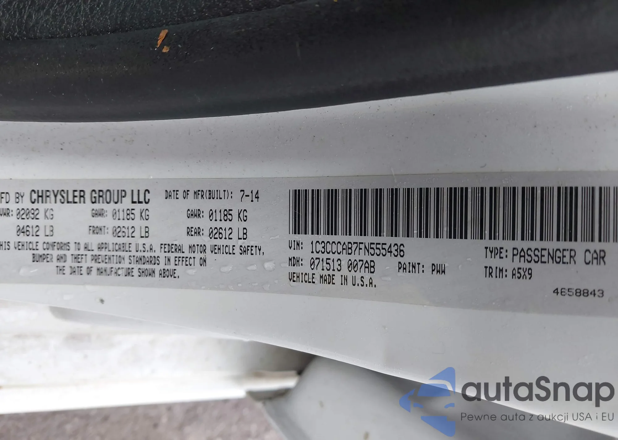 LOT: 42193998 VIN: 1C3CCCAB7FN555436