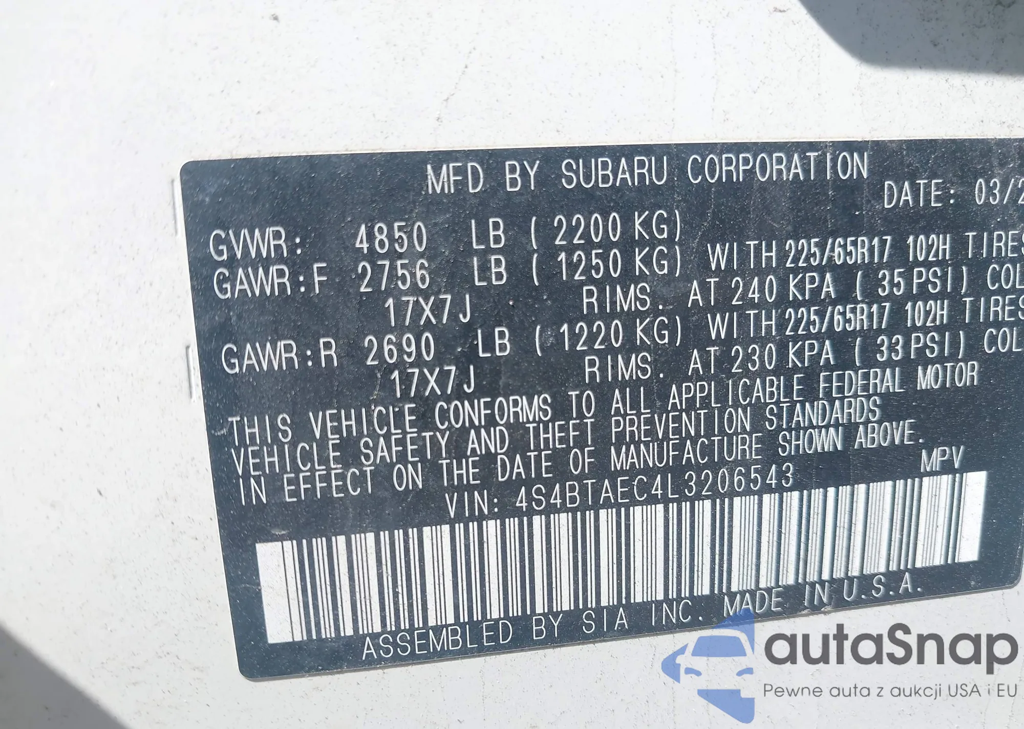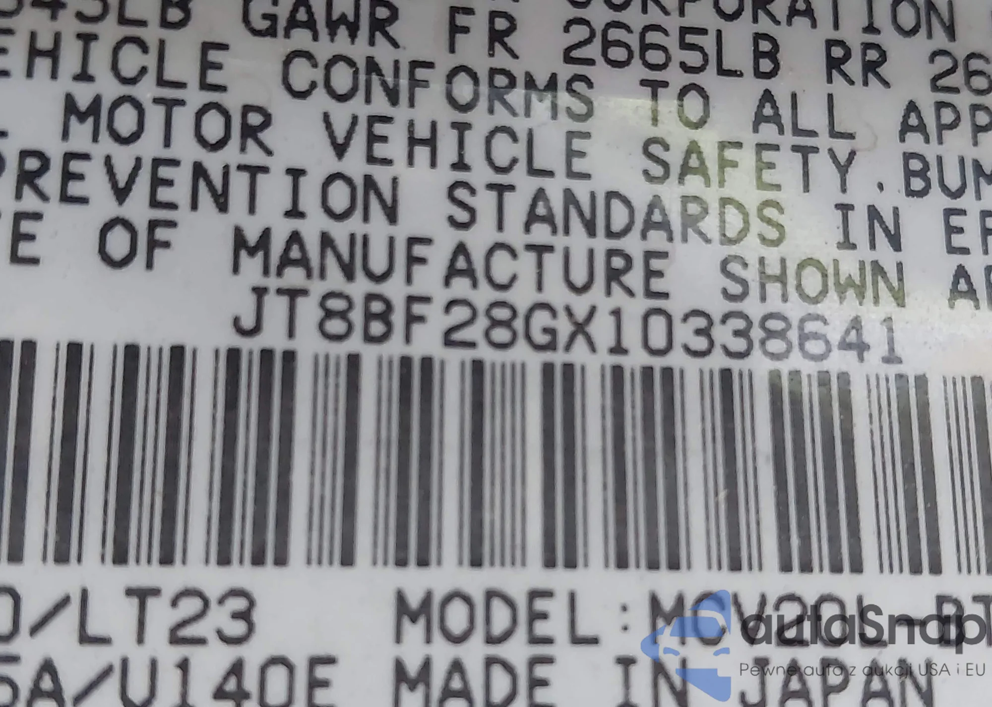 LOT: 42260801 VIN: JF1SF635X1H700795