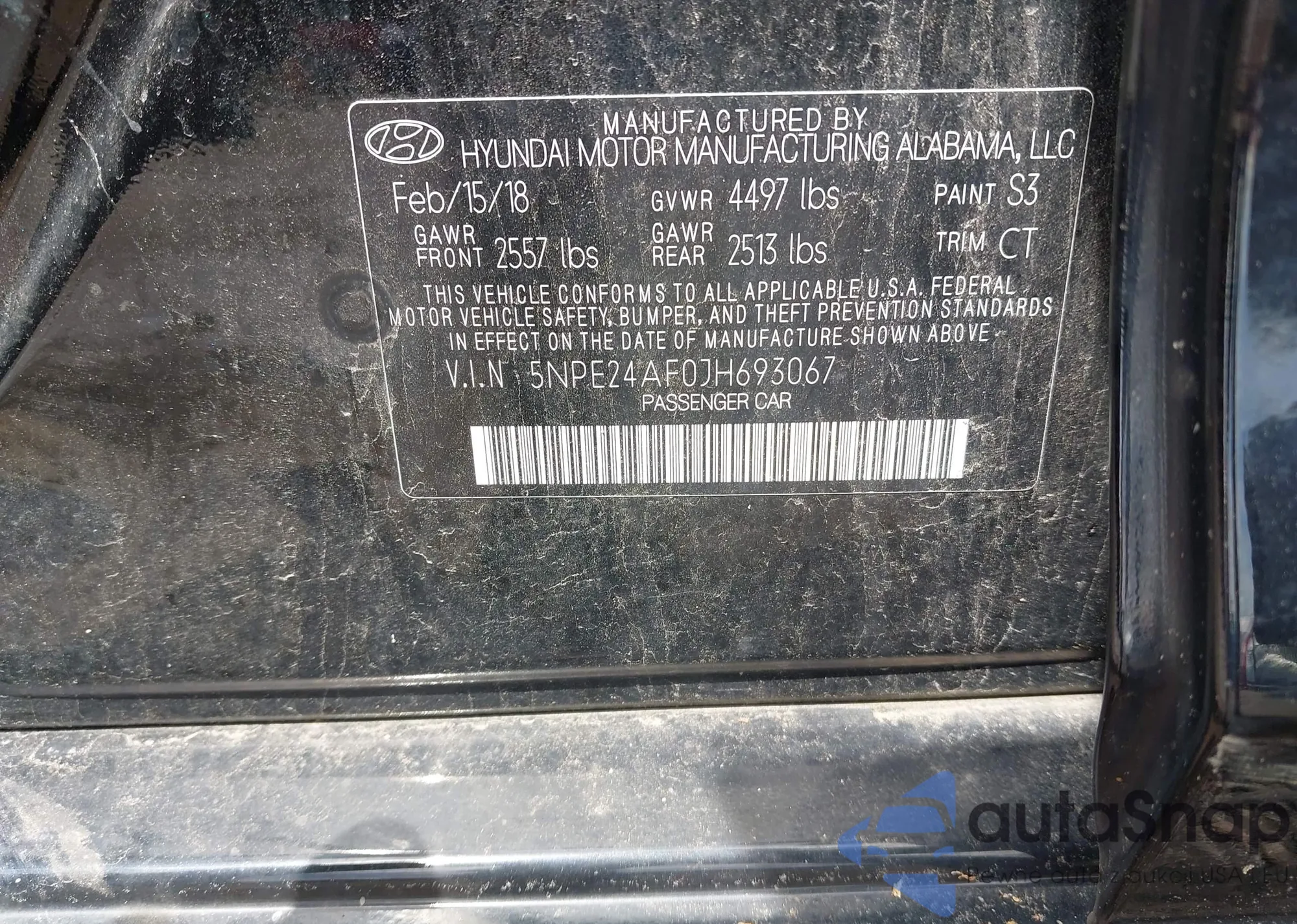 • VIN 5NPE24AF0JH693067