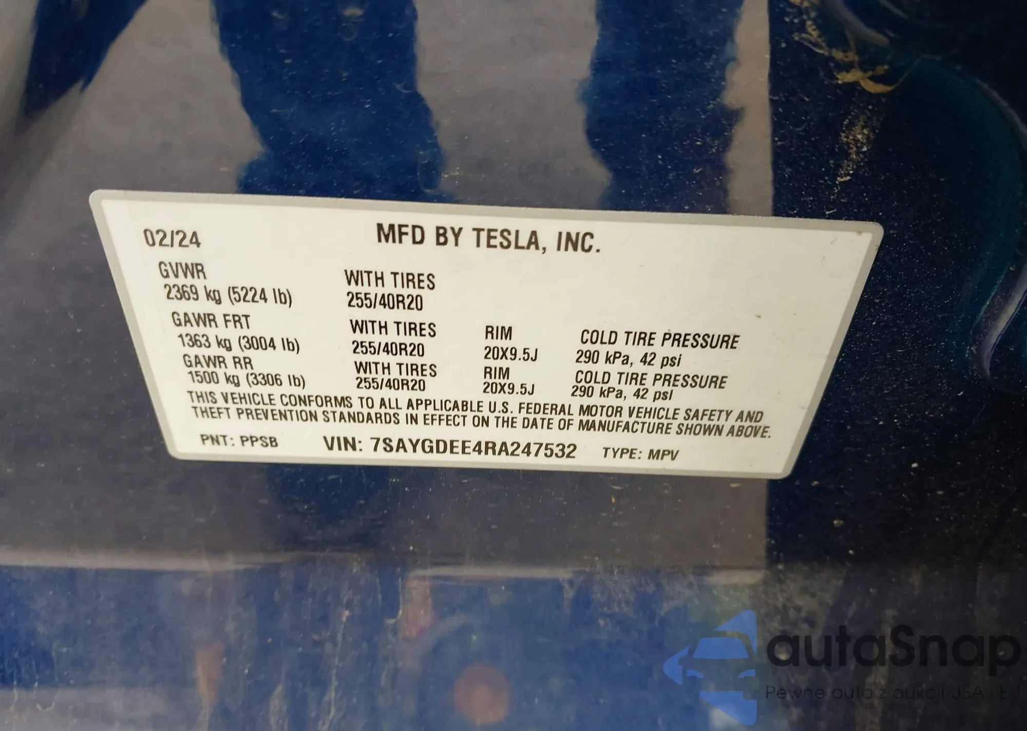2024 Tesla Model Y Long Range Dual Motor All-Wheel Drive from USA, damaged, VIN 7SAYGDEE4RA247532
