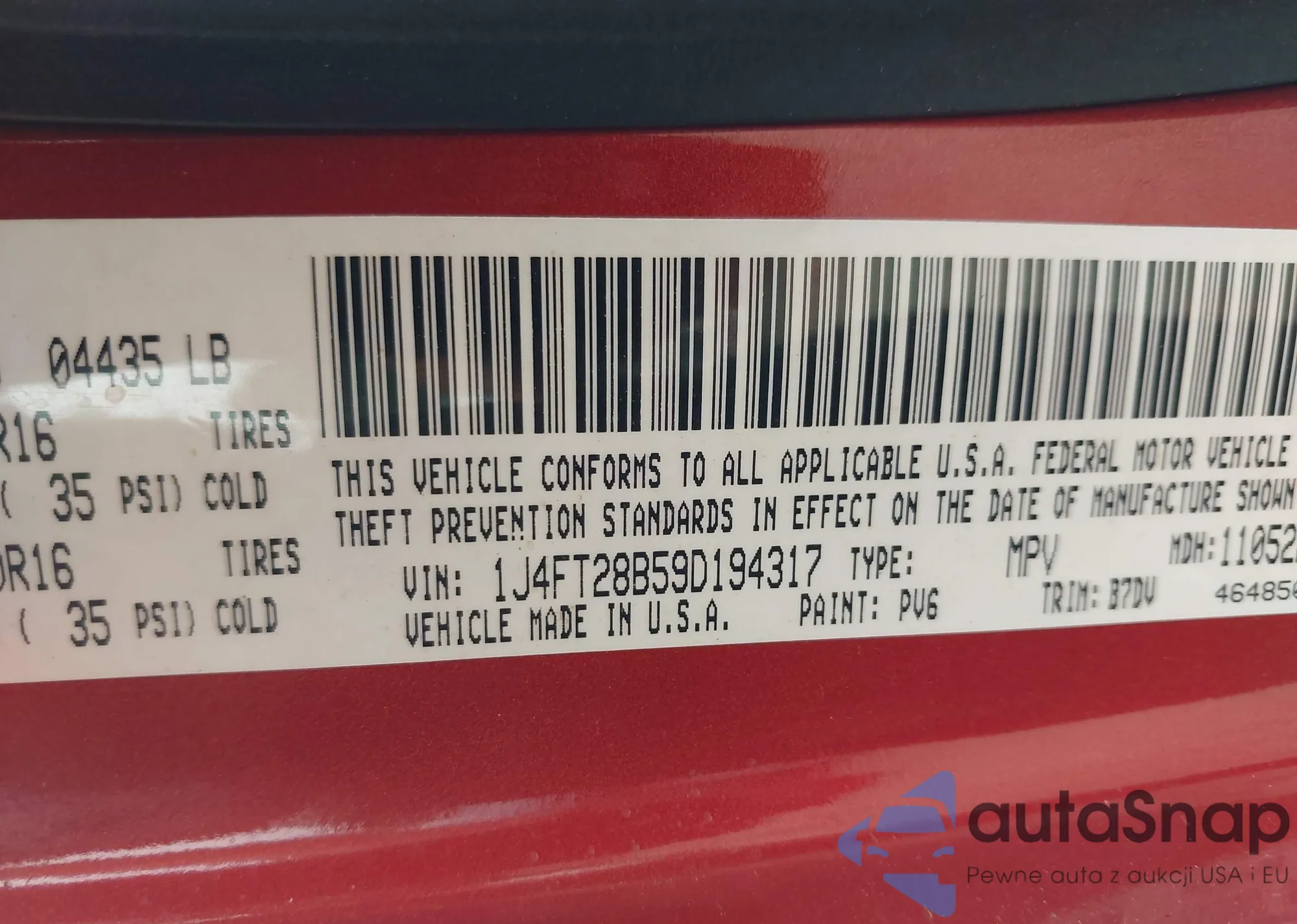 LOT: 42221134 VIN: 1J4FT28B59D194317