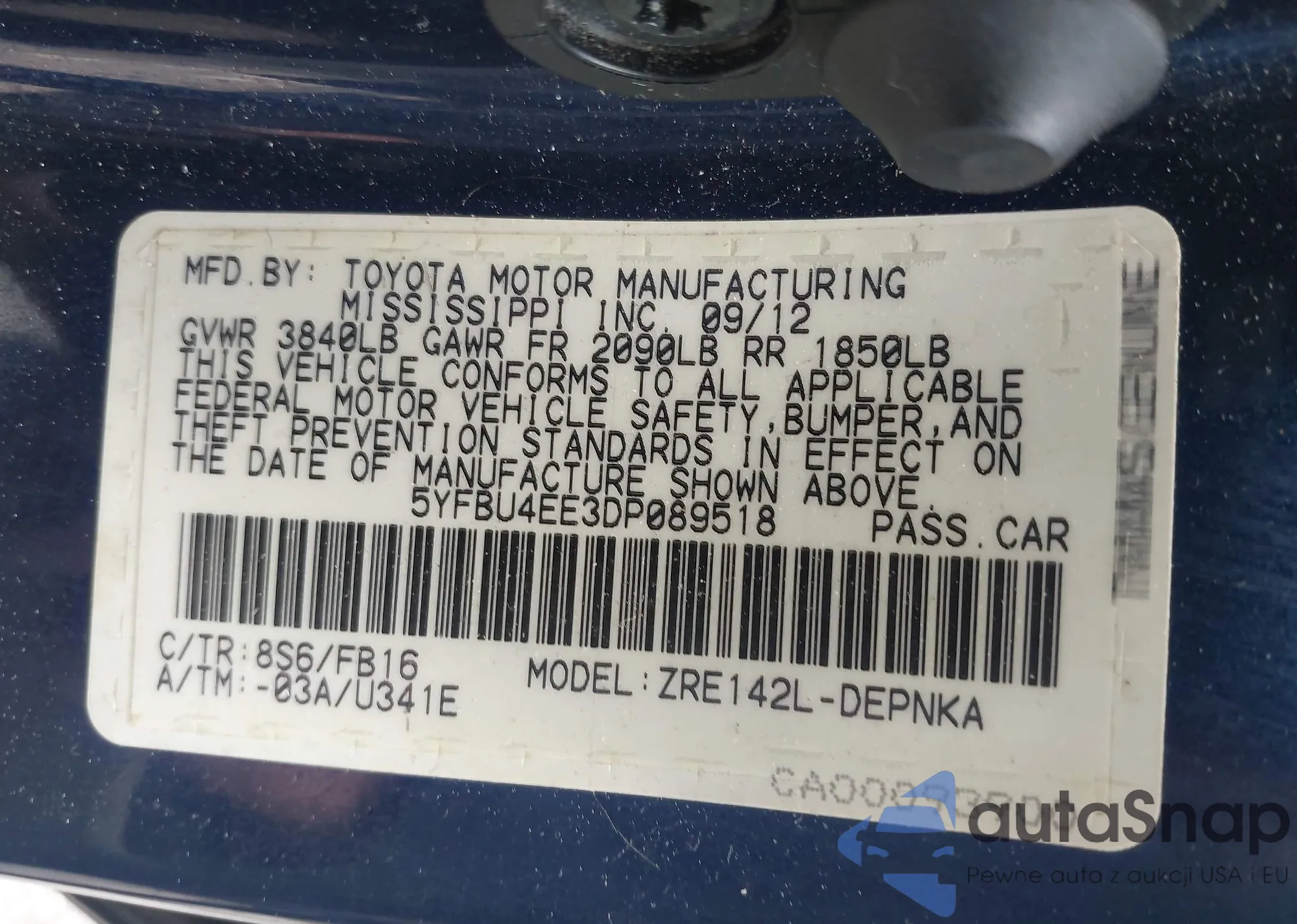 • VIN 5YFBU4EE3DP089518
