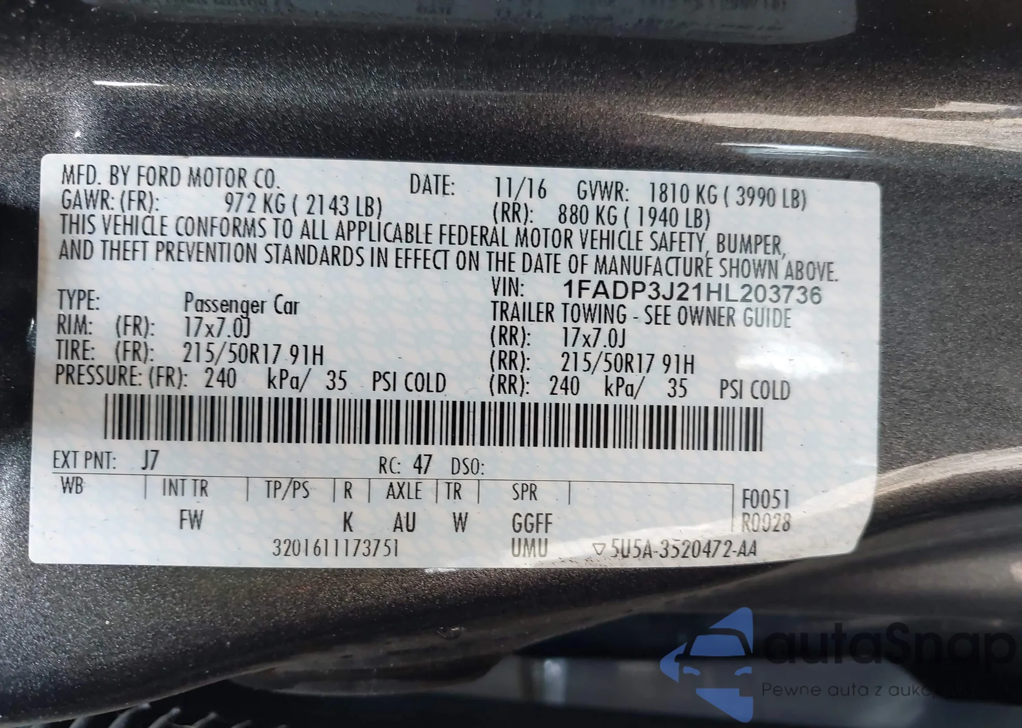 • VIN 1FADP3J21HL203736