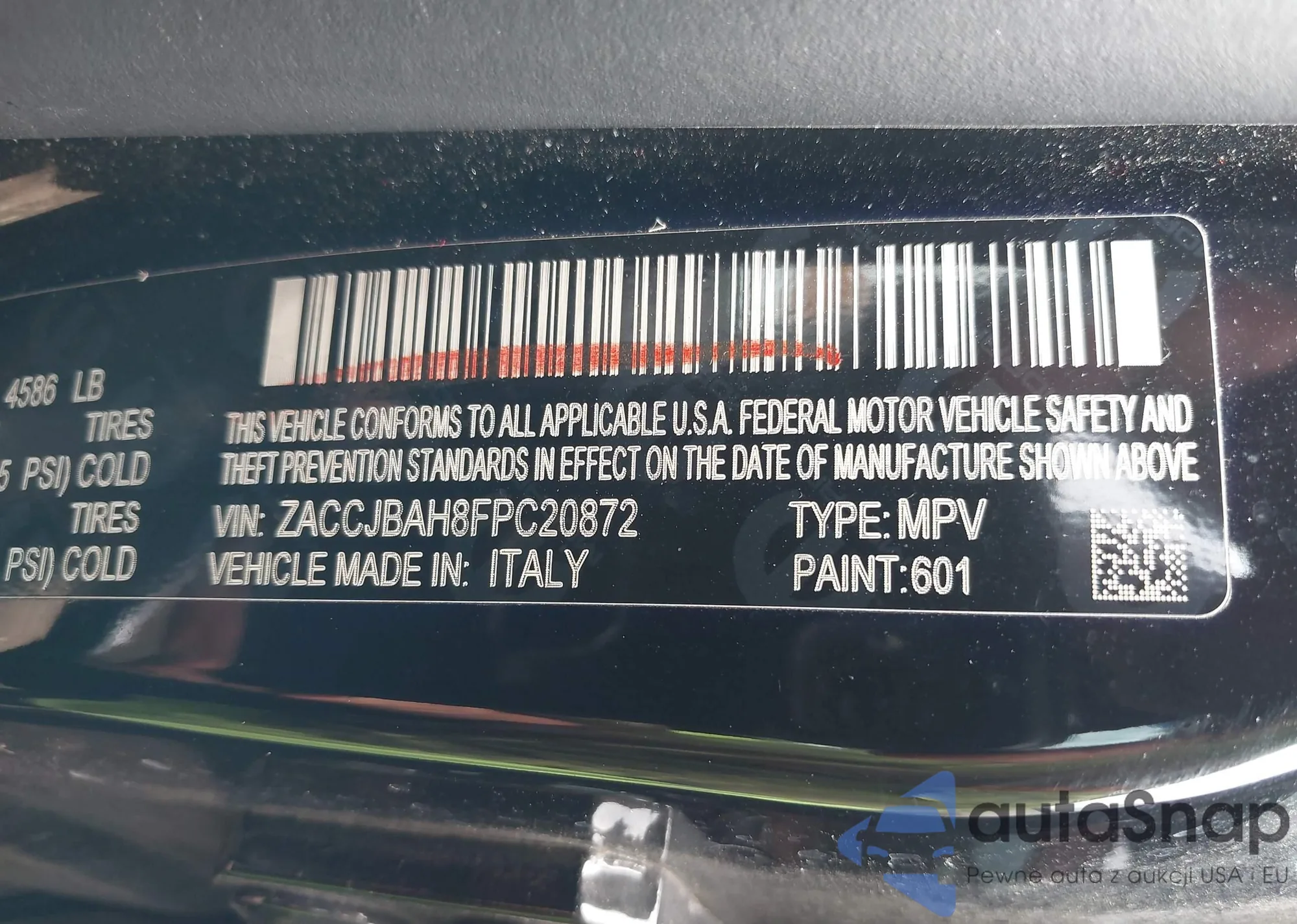 LOT: 42258006 VIN: ZACCJBAH8FPC20872
