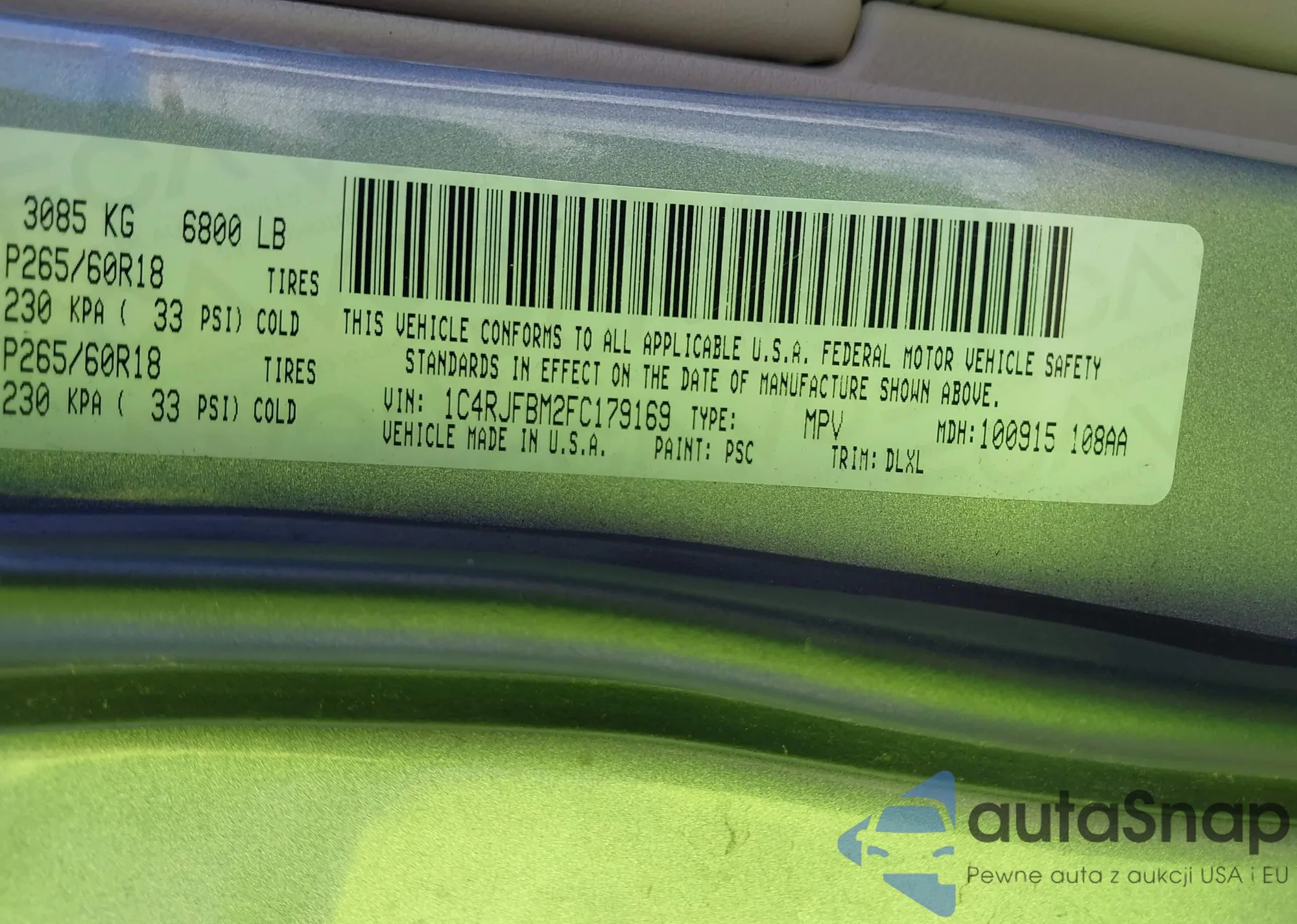 LOT: 40441155 VIN: 1C4RJFBM2FC179169