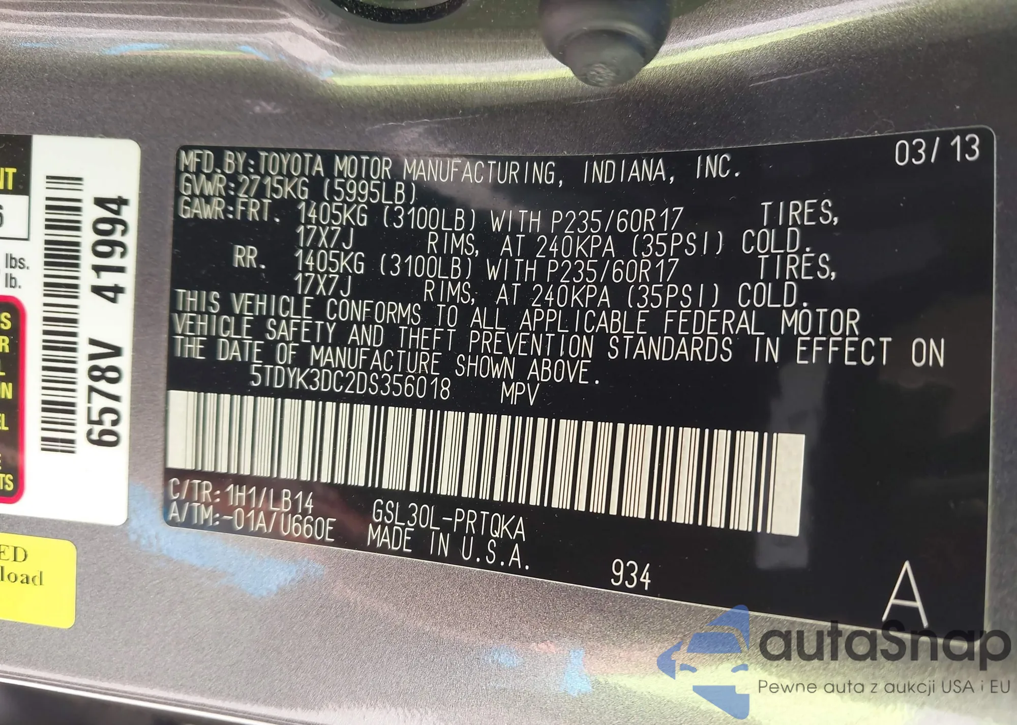• VIN 5TDYK3DC2DS356018