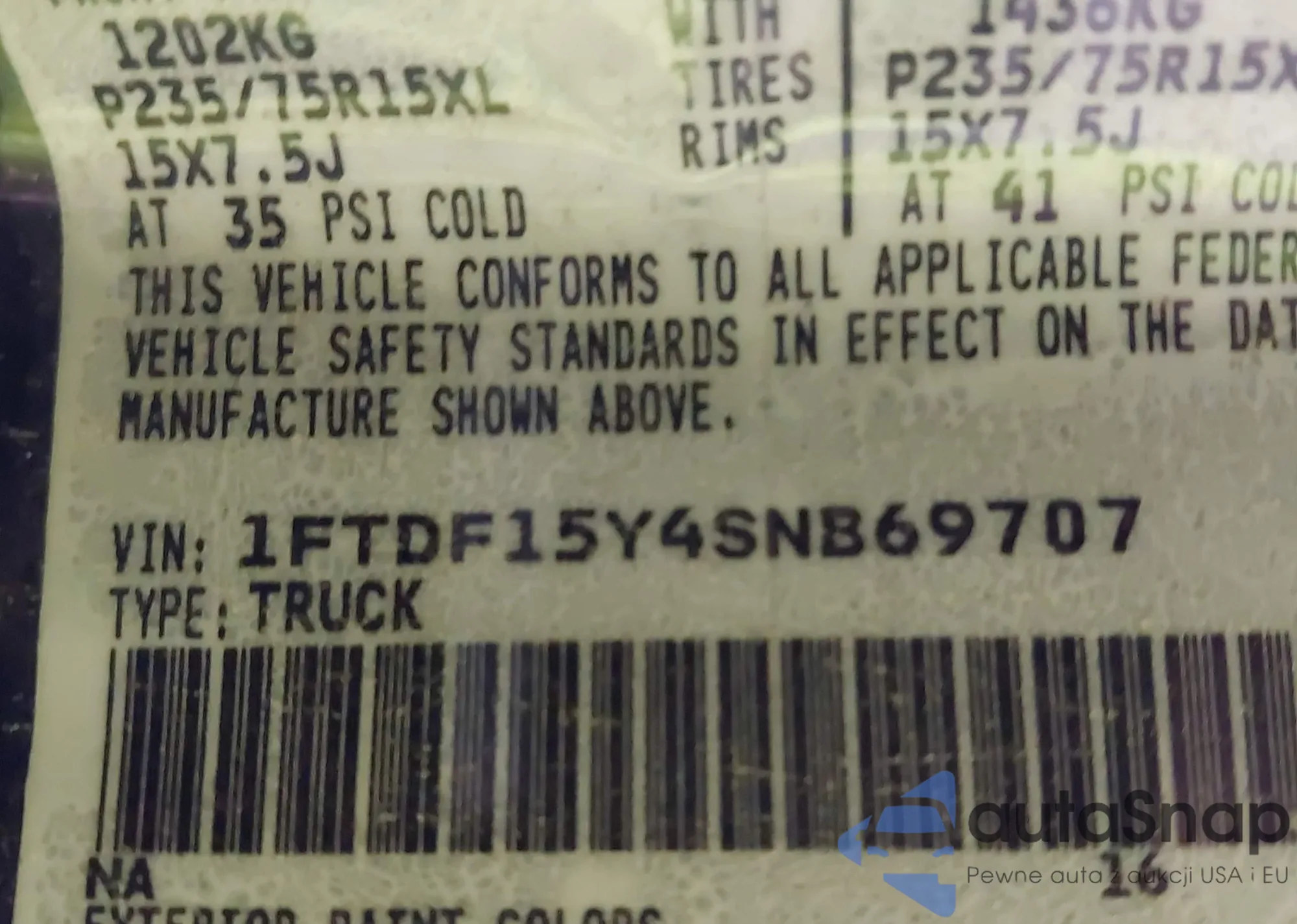 • VIN 1FTDF15Y4SNB69707