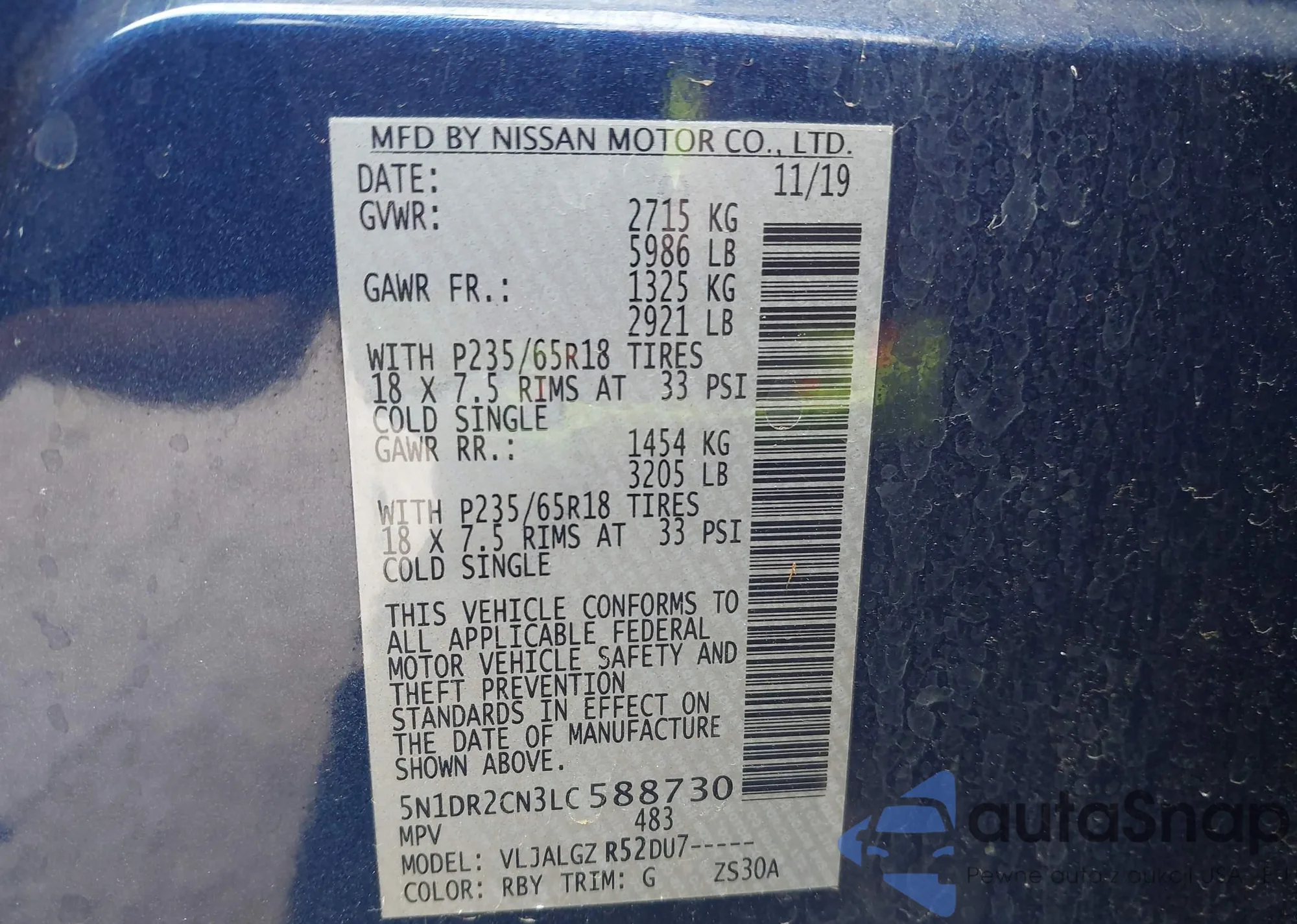 • VIN 5N1DR2CN3LC588730