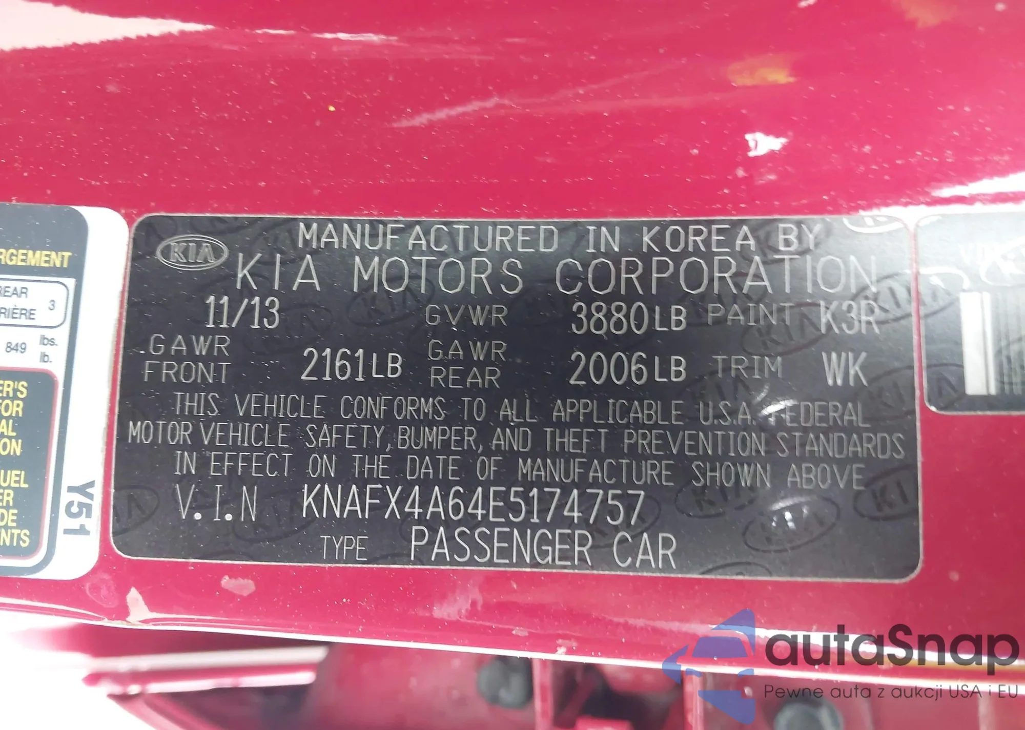 LOT: 41212994 VIN: KNAFX4A64E5174757