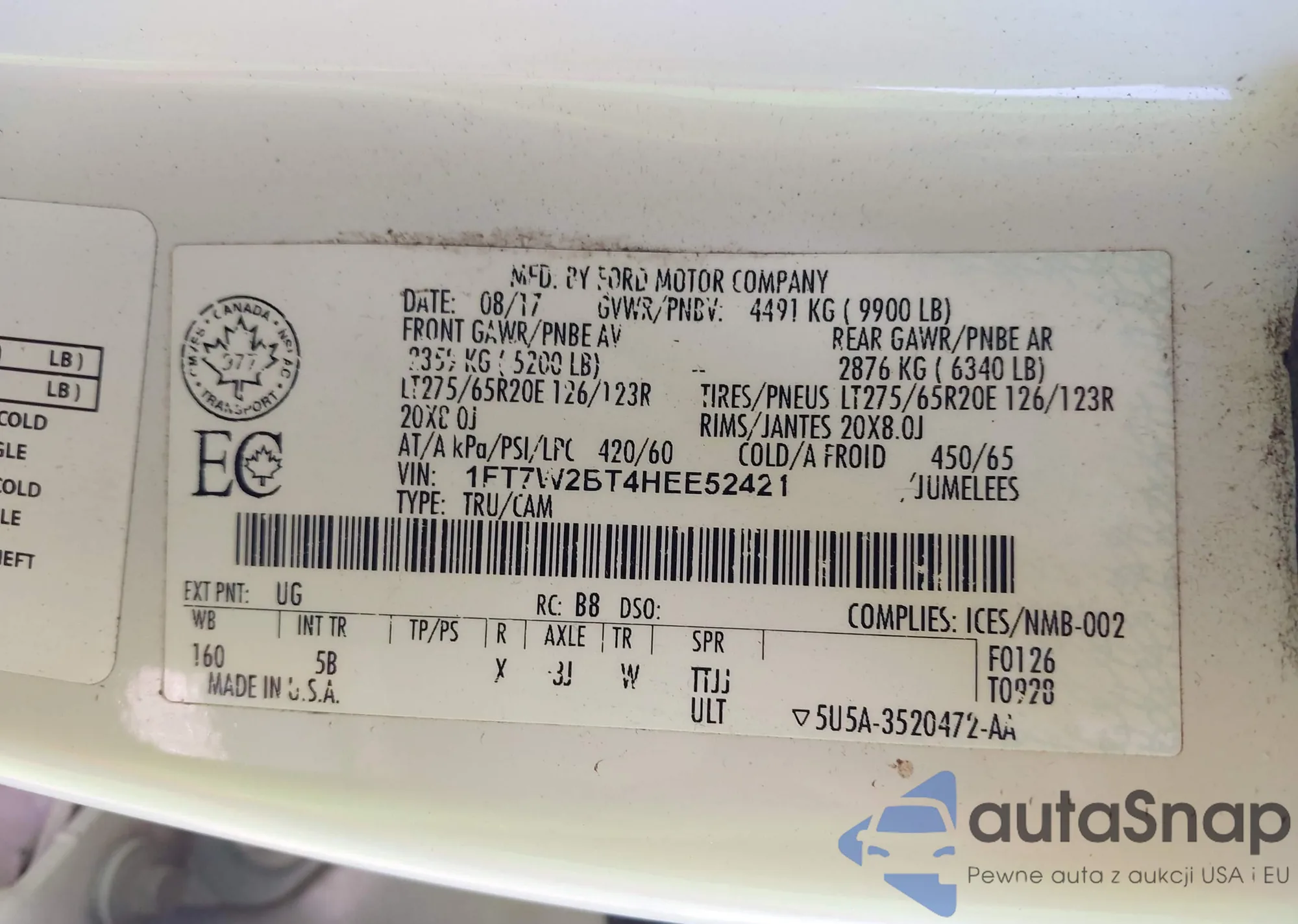 LOT: 41362197 VIN: 1FT7W2BT4HEE52421