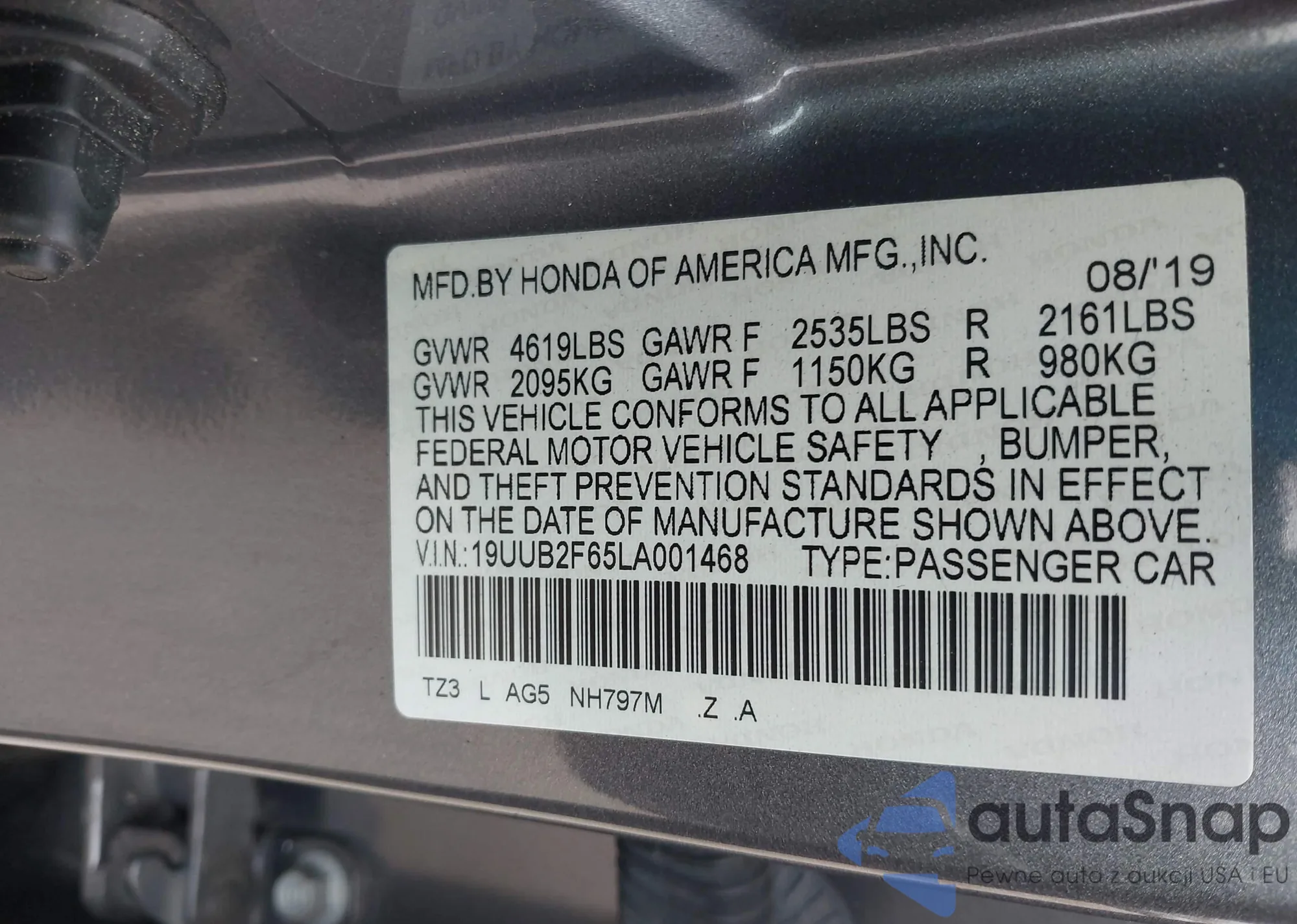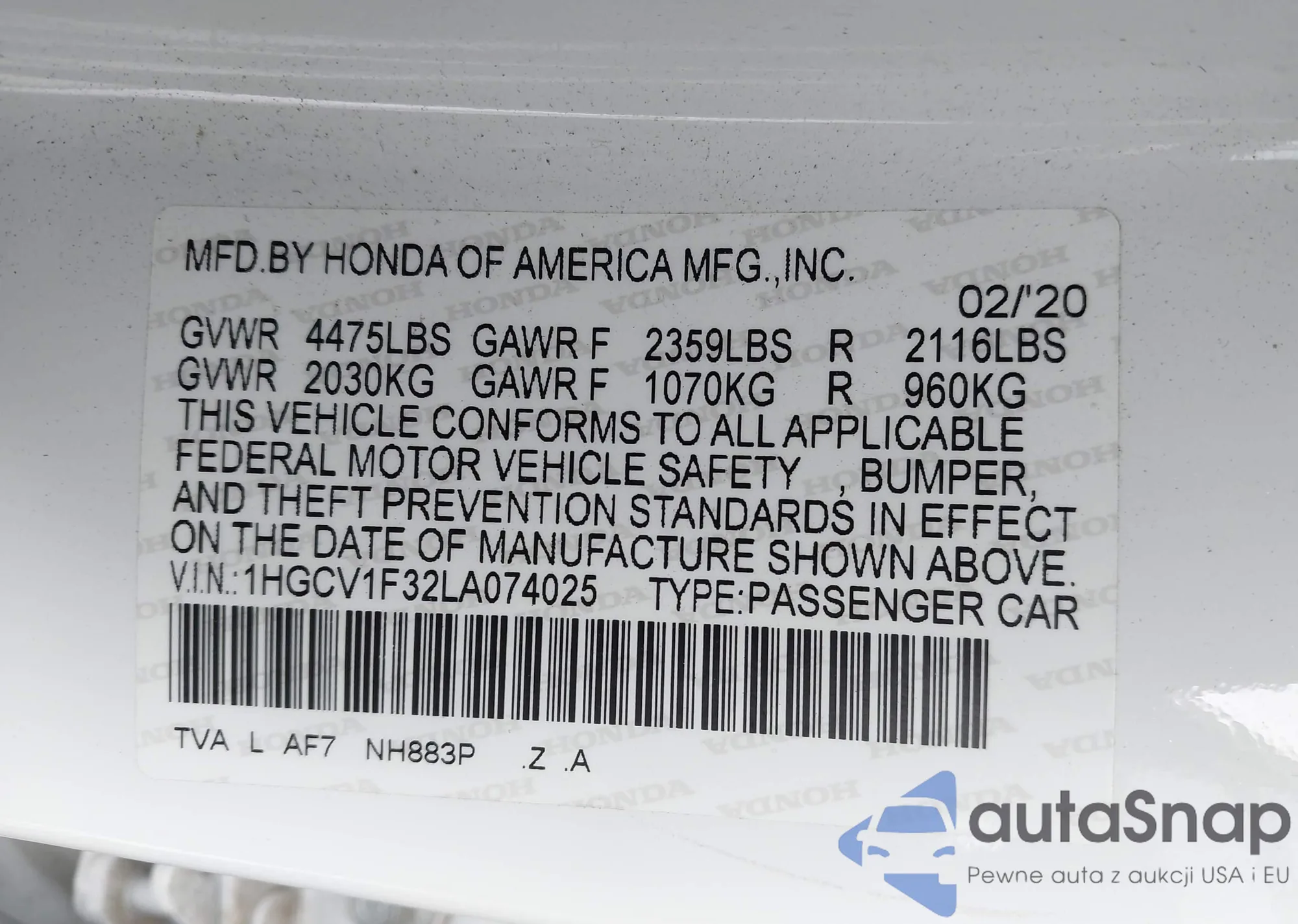 • VIN 1HGCV1F32LA074025