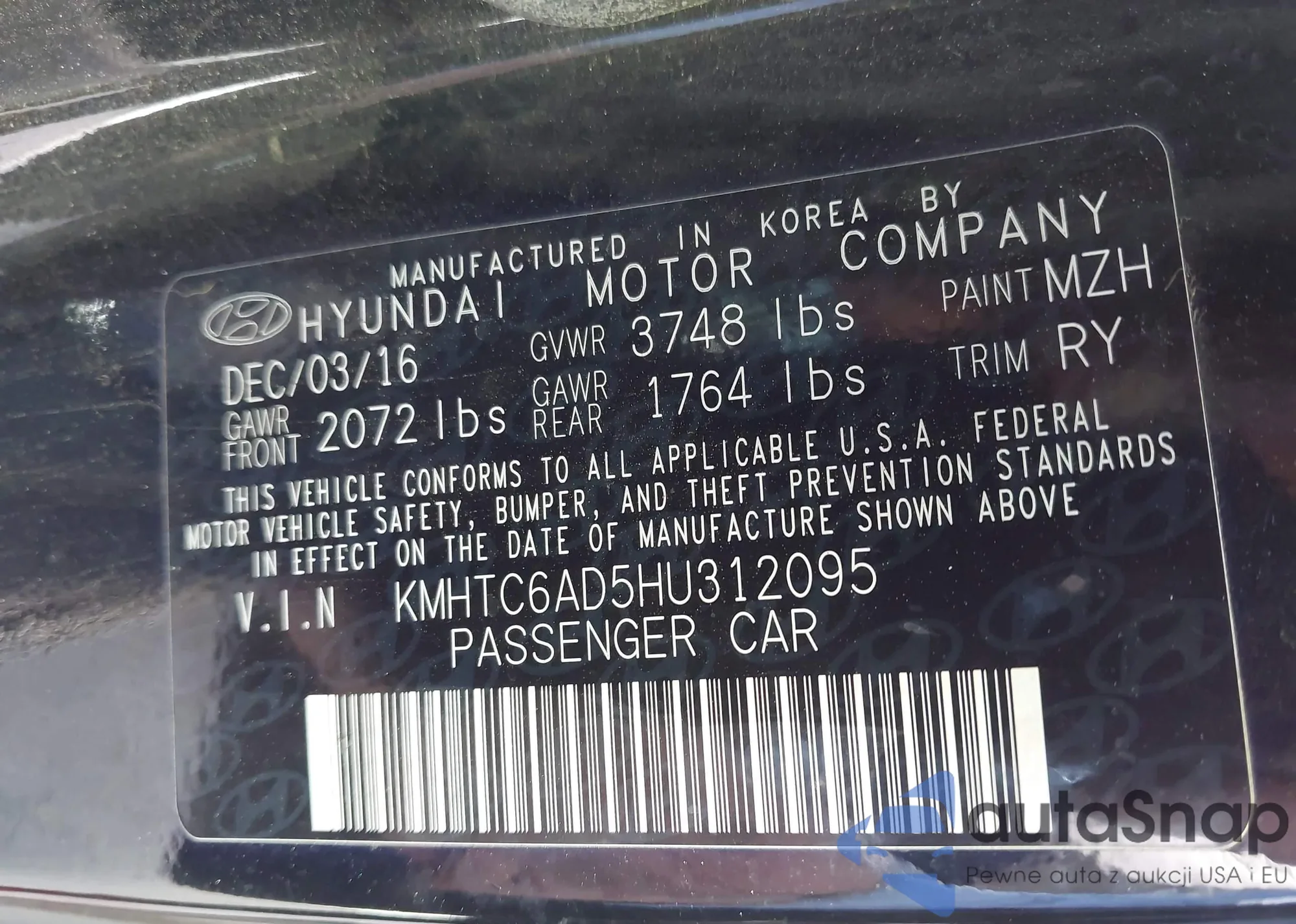 • VIN KMHTC6AD5HU312095