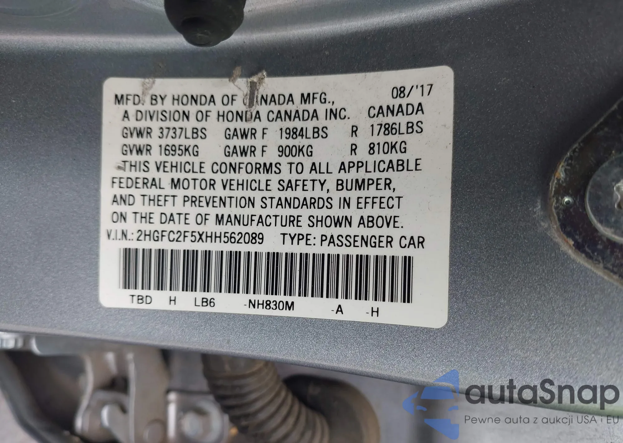 • VIN 2HGFC2F5XHH562089