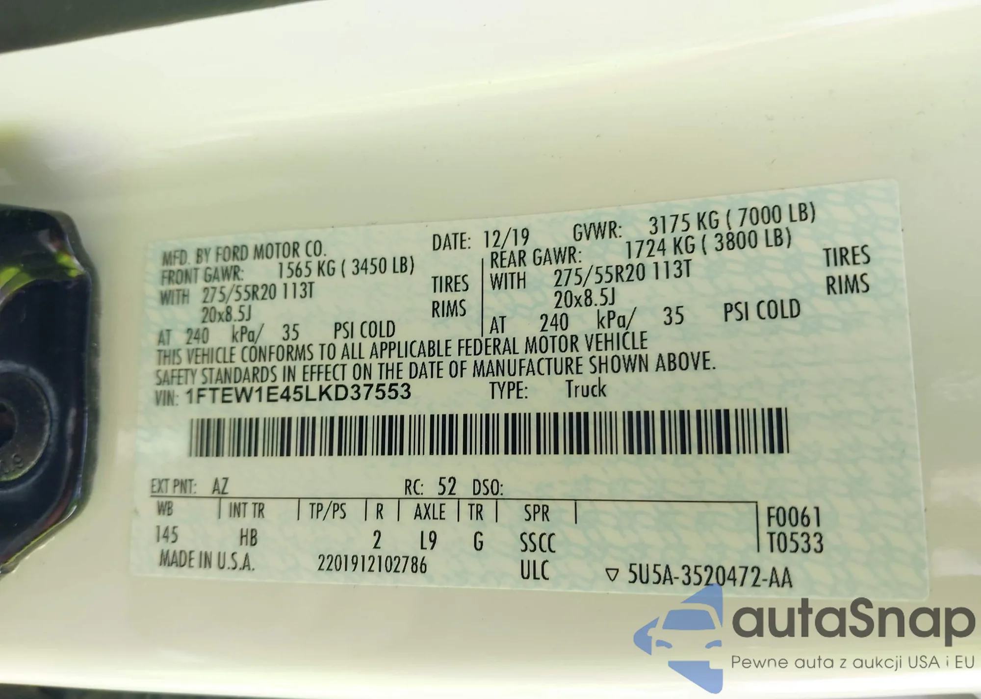 • VIN 1FTEW1E45LKD37553