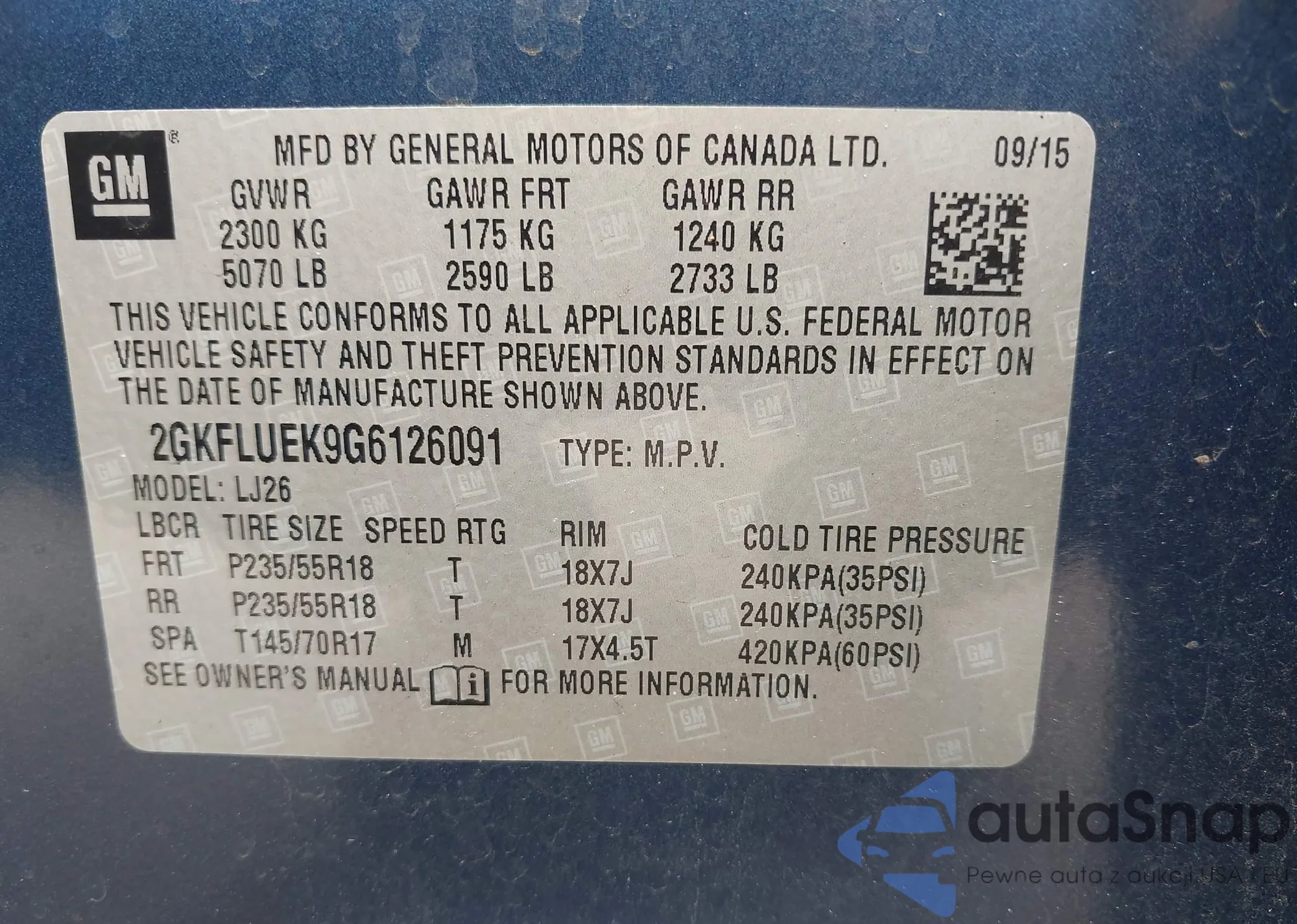 • VIN 2GKFLUEK9G6126091