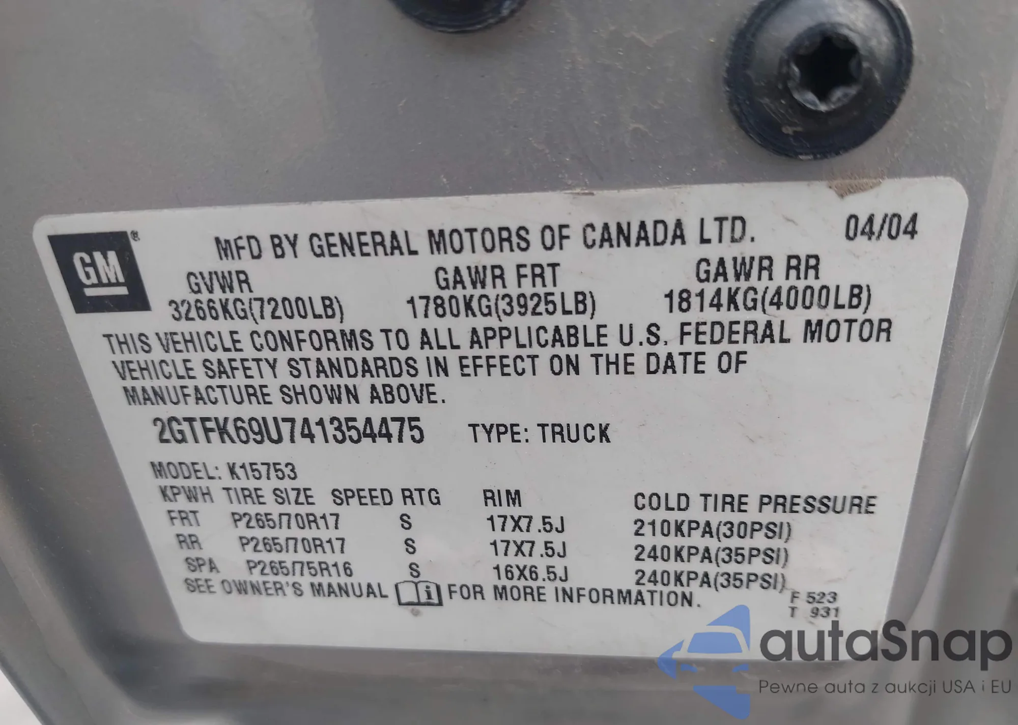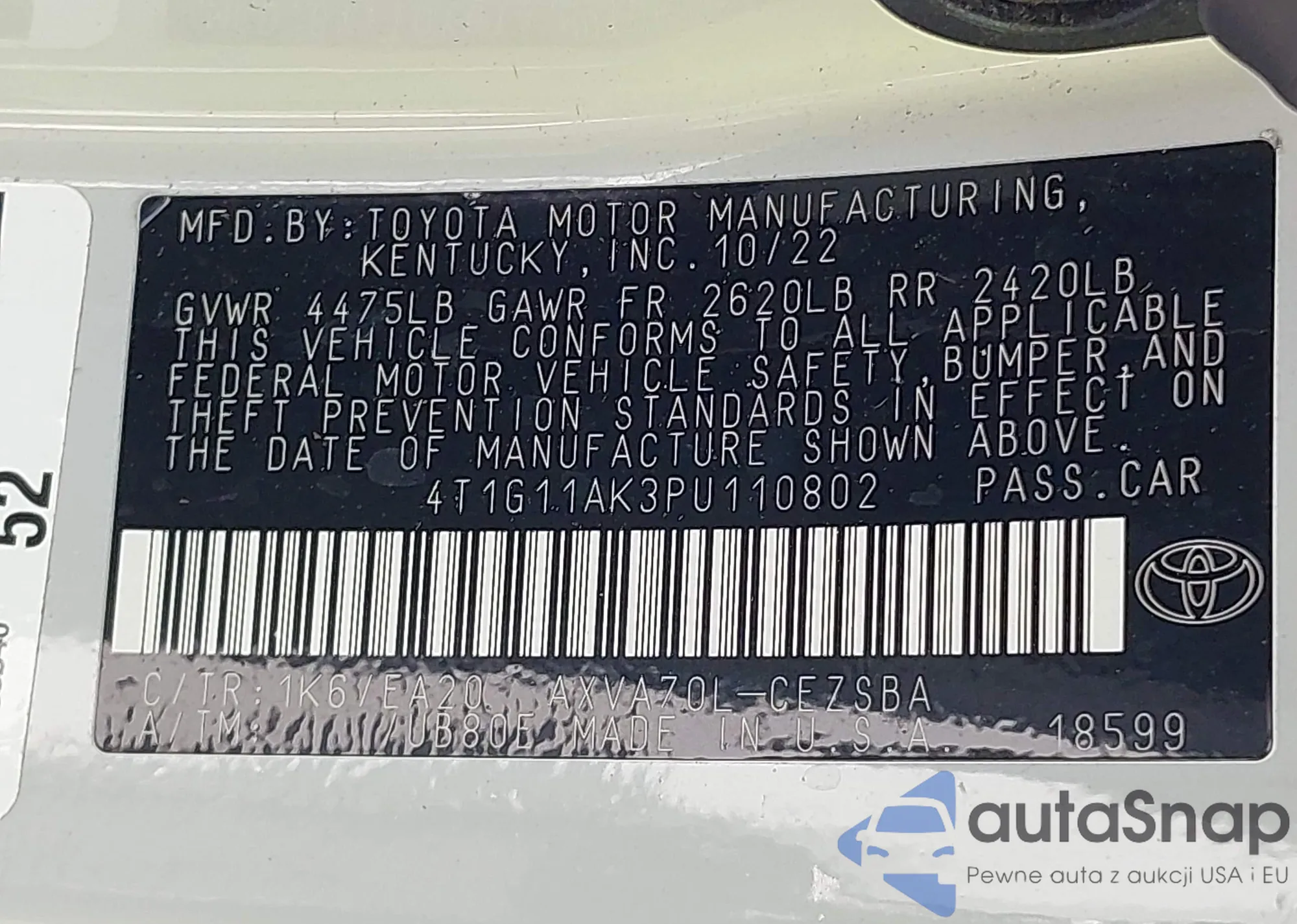 • VIN 4T1G11AK3PU110802
