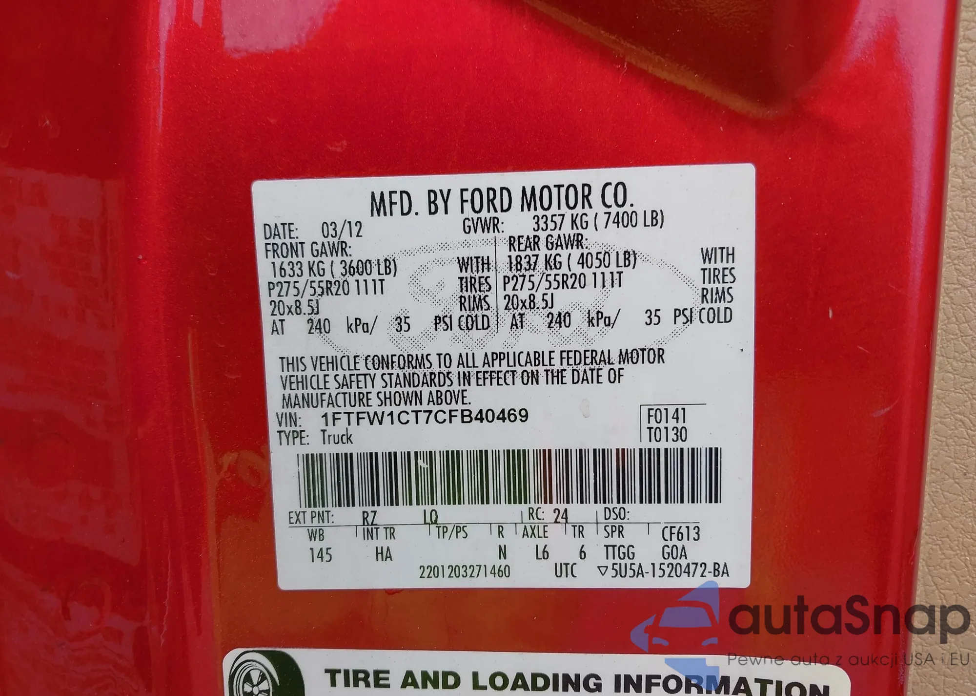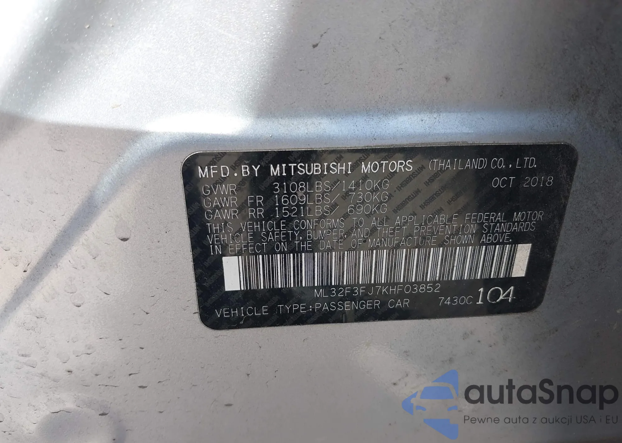 LOT: 42161220 VIN: ML32F3FJ7KHF03852