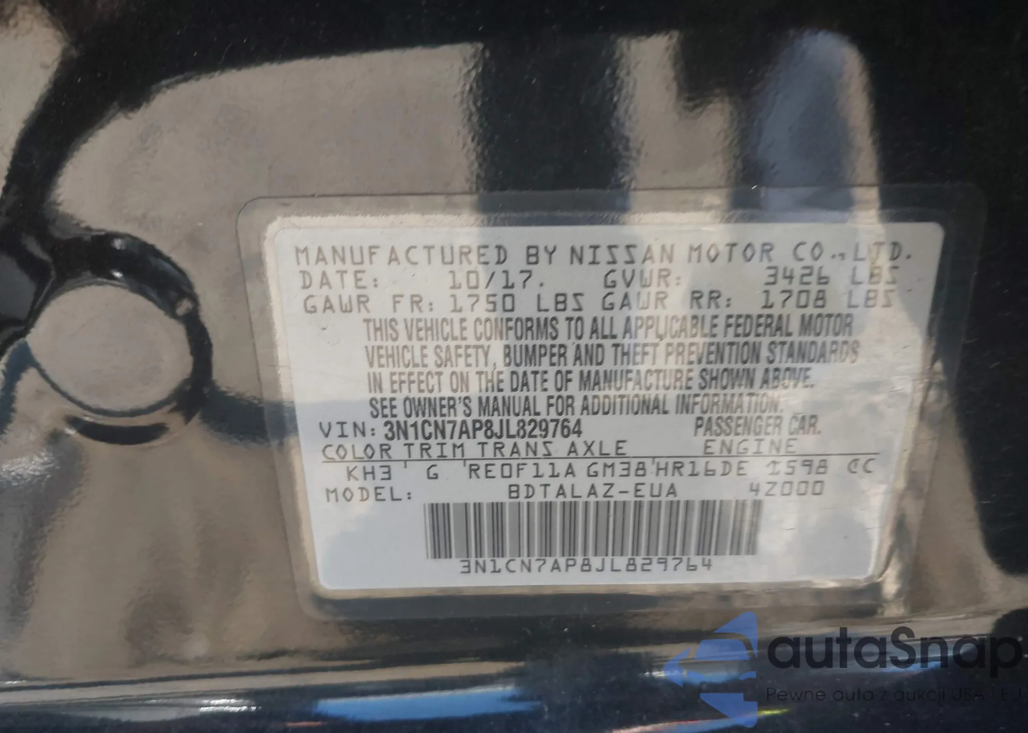 LOT: 41433301 VIN: JN8AF5MR2DT208401