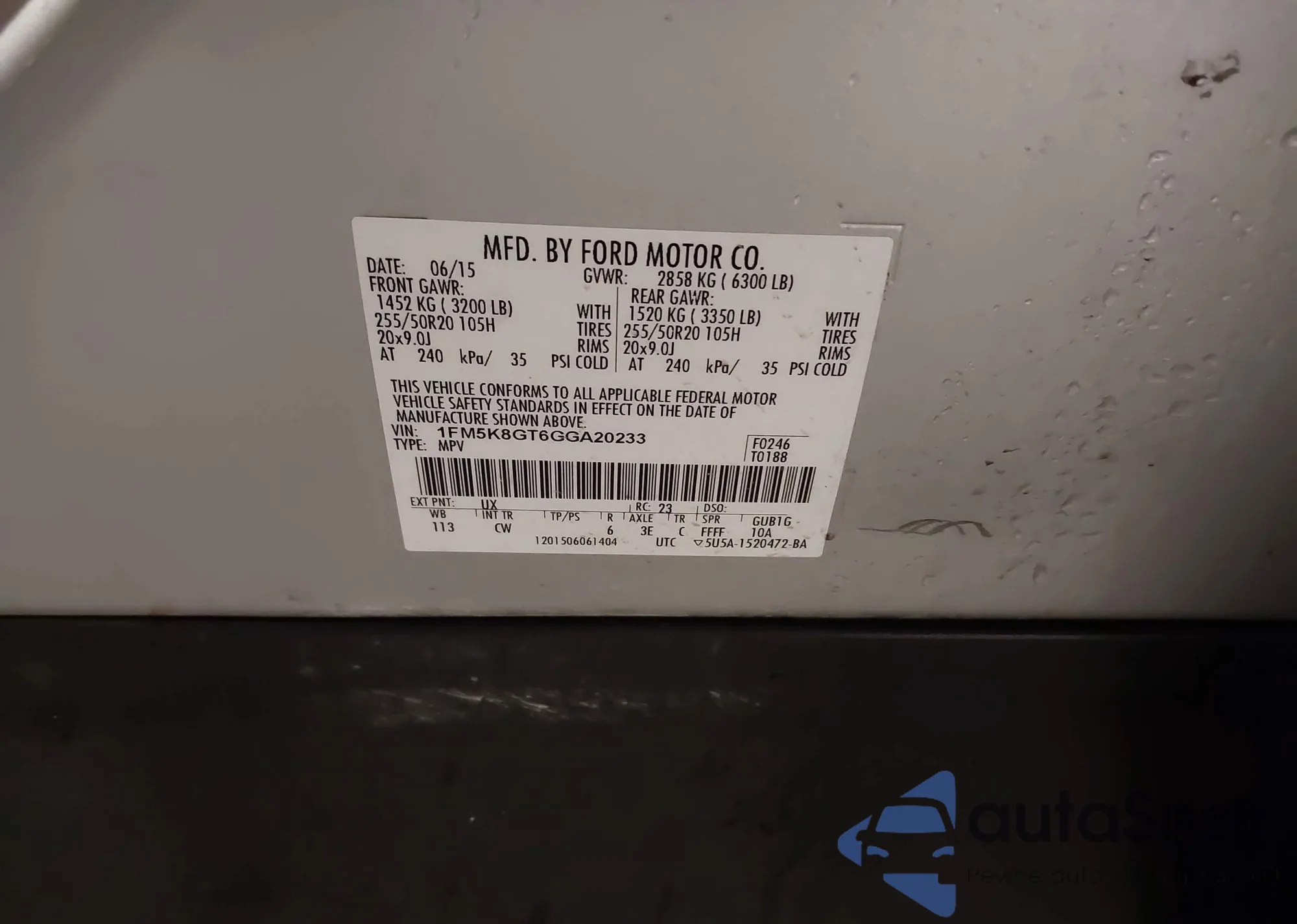 • VIN 1FM5K8GT6GGA20233