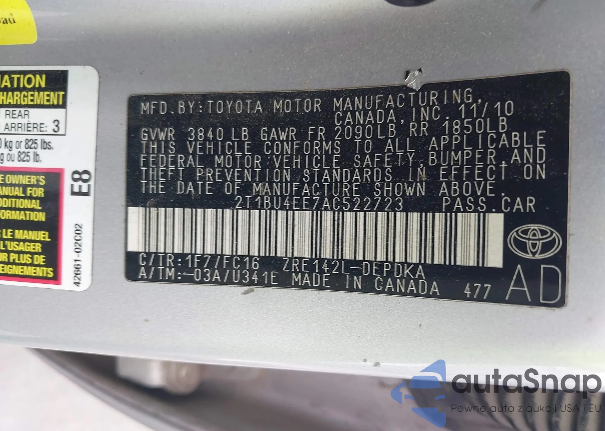 • VIN 2T1BU4EE7AC522723