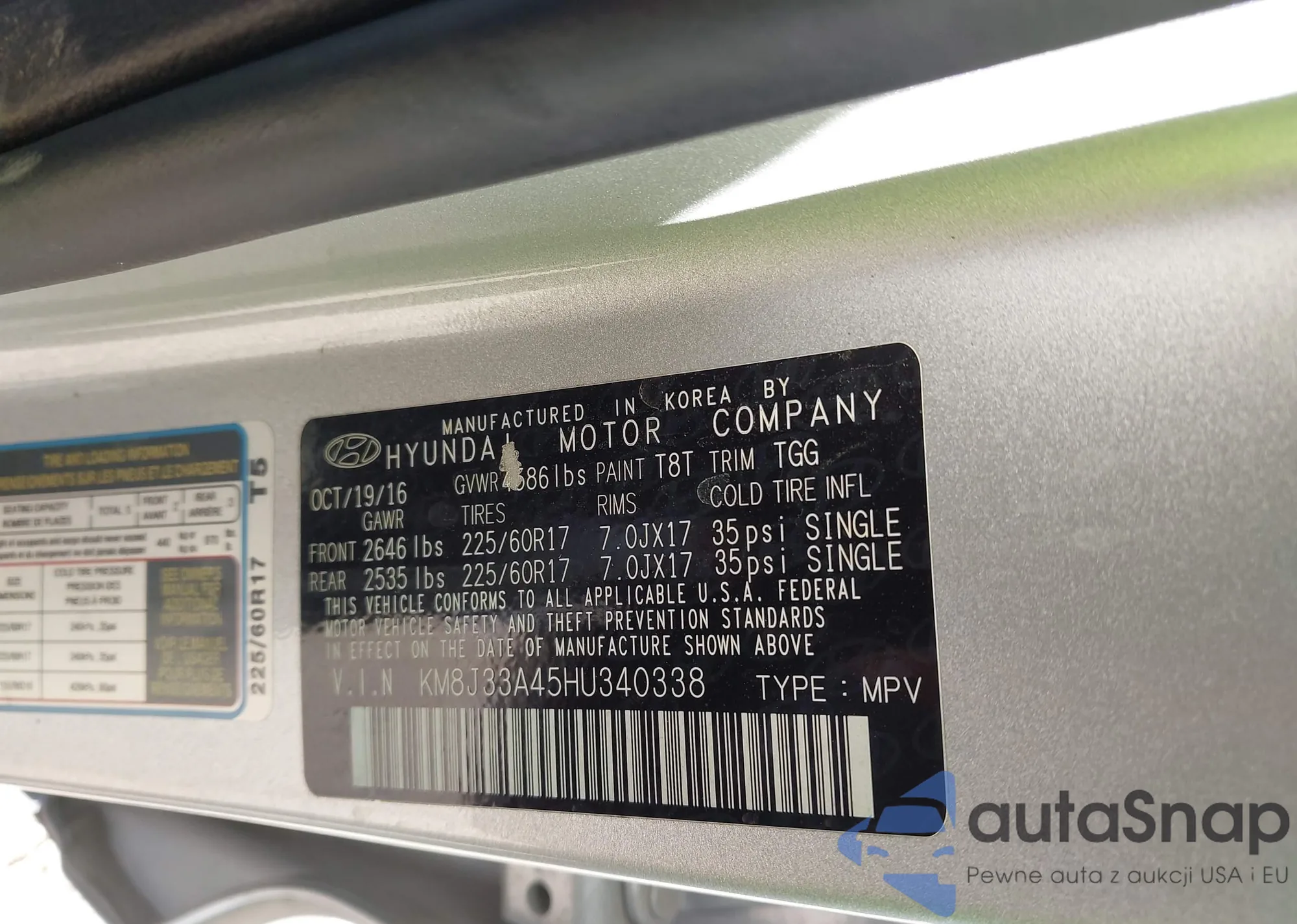 • VIN KM8J33A45HU340338