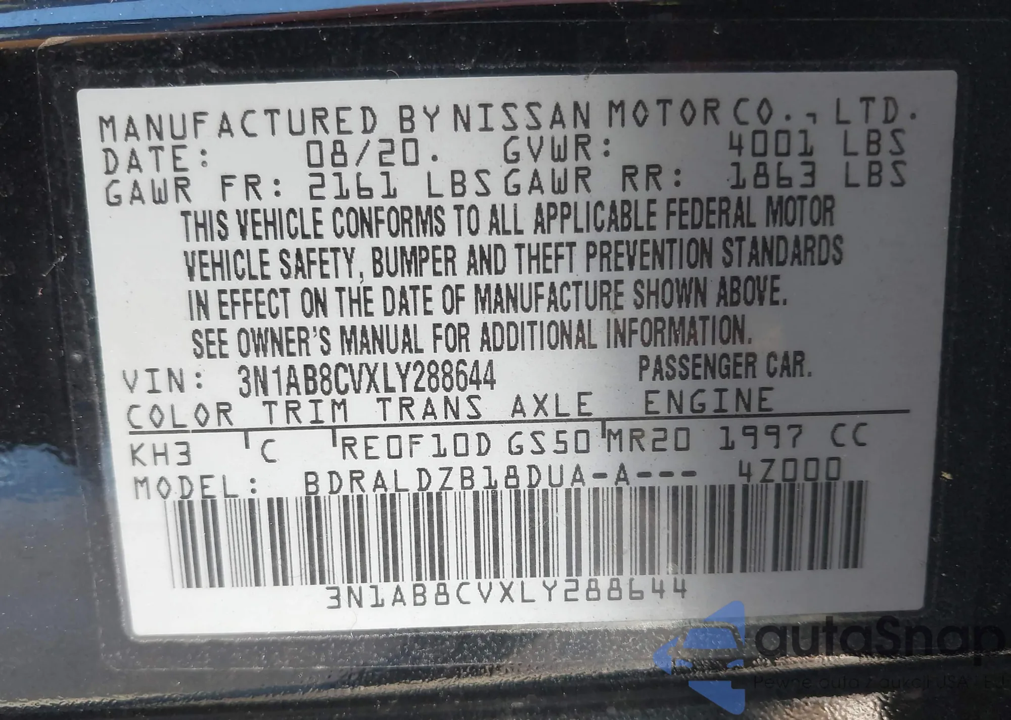• VIN 3N1AB8CVXLY288644