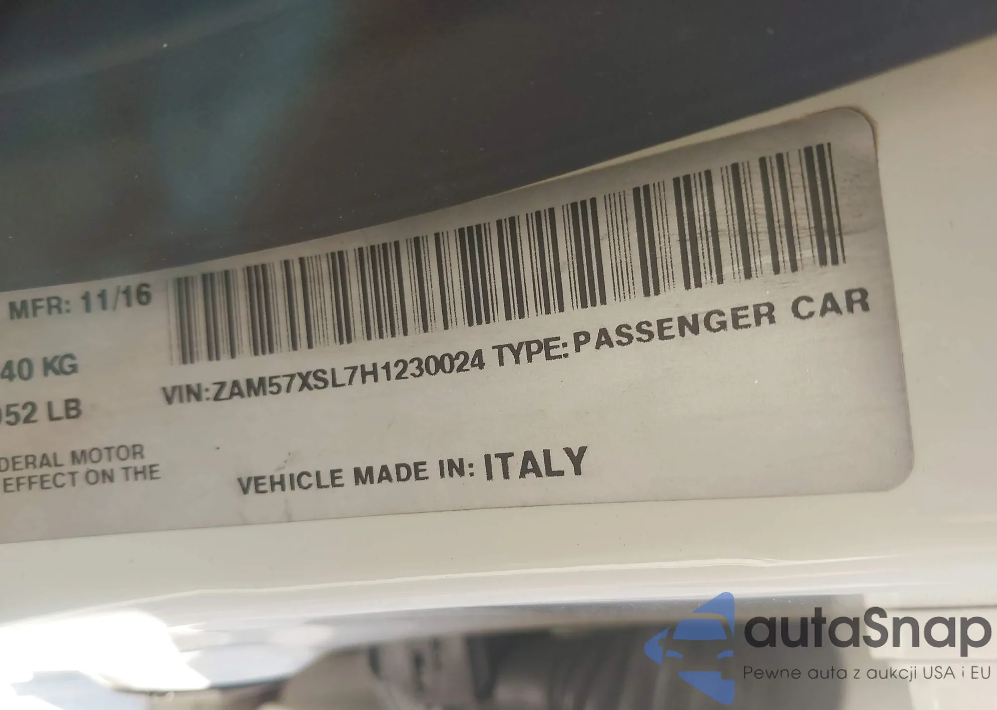• VIN ZAM57XSL7H1230024