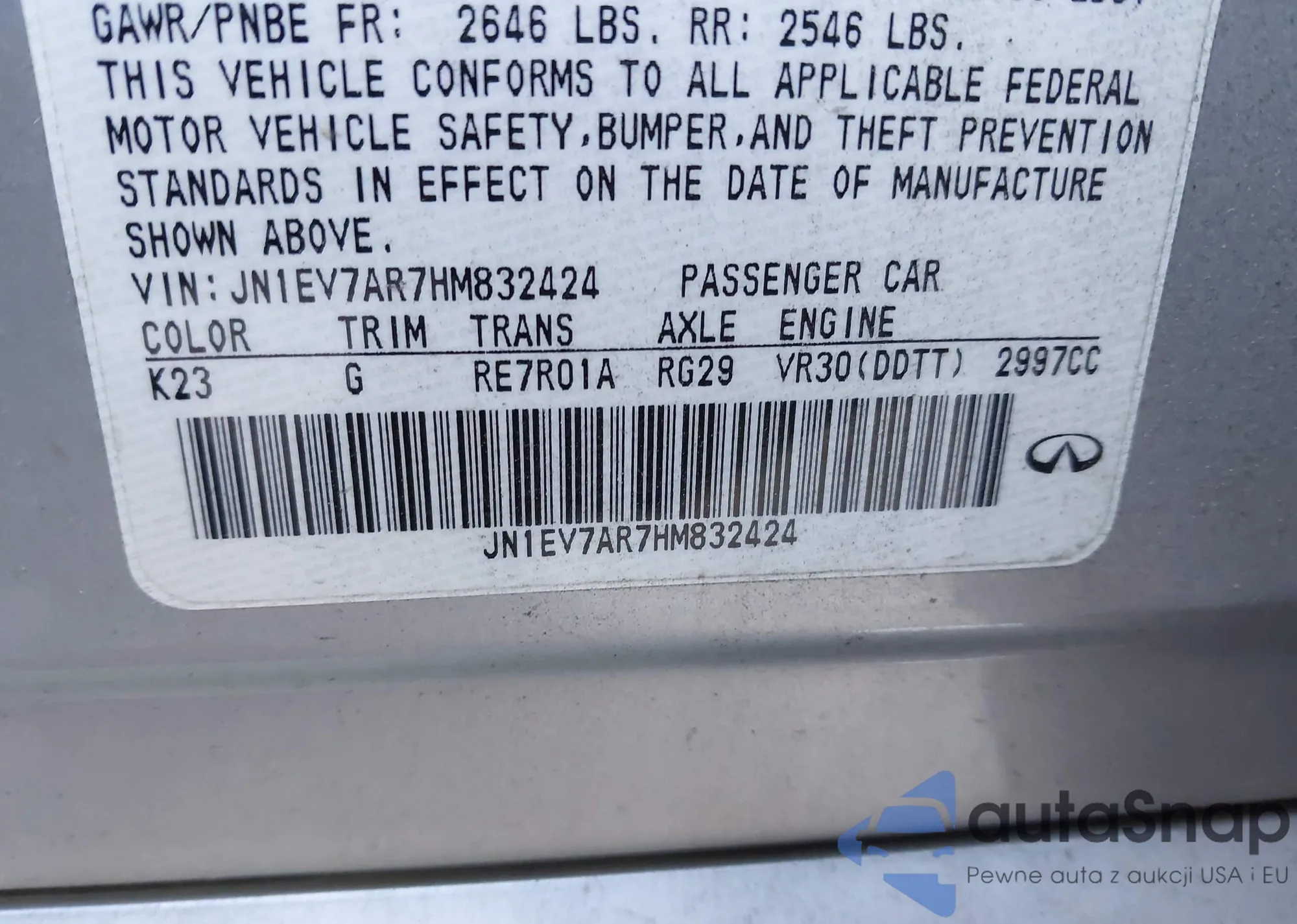 LOT: 41506270 VIN: JN1EV7AP9LM207725