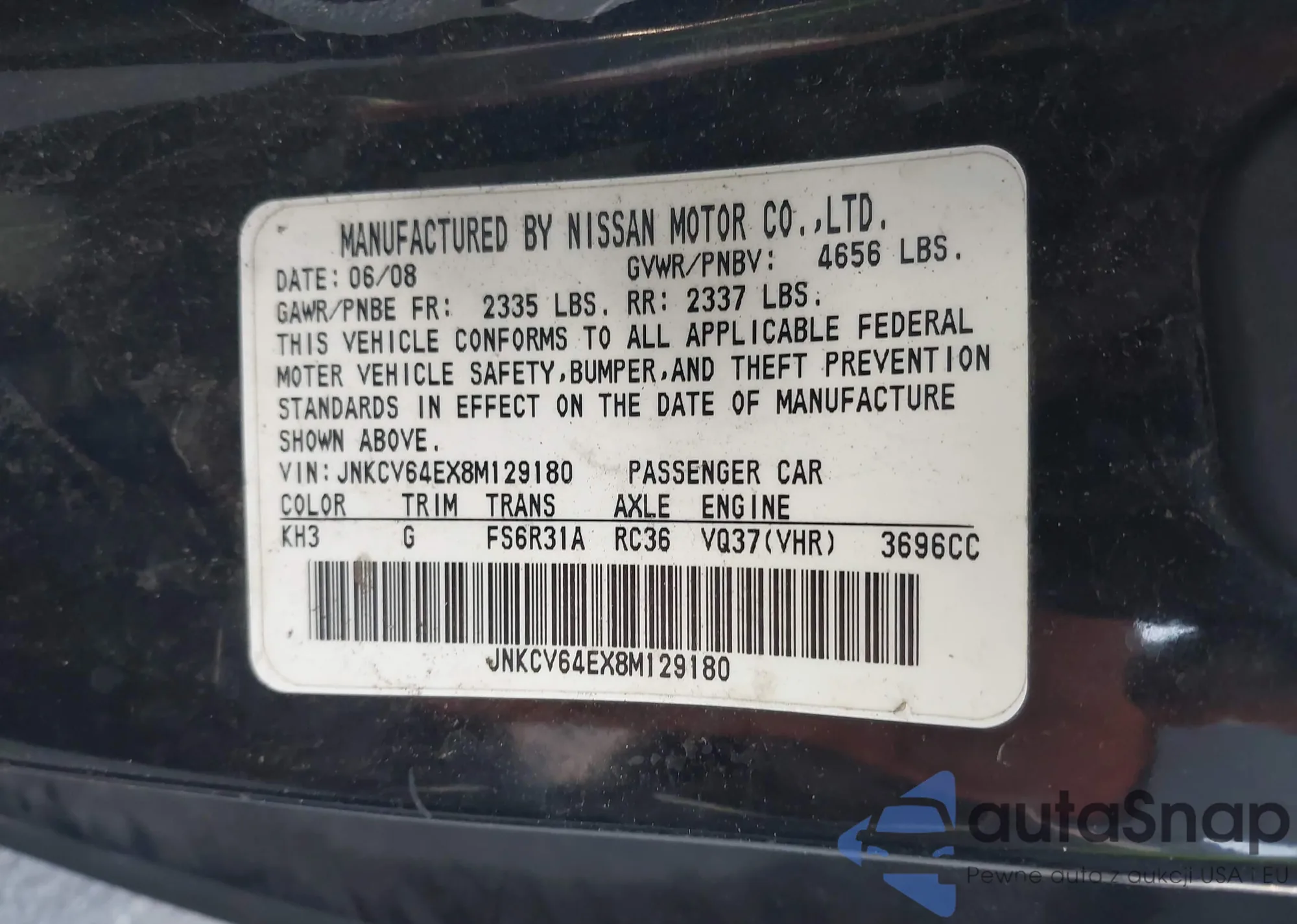 LOT: 41498691 VIN: 1HGCM56346A038268