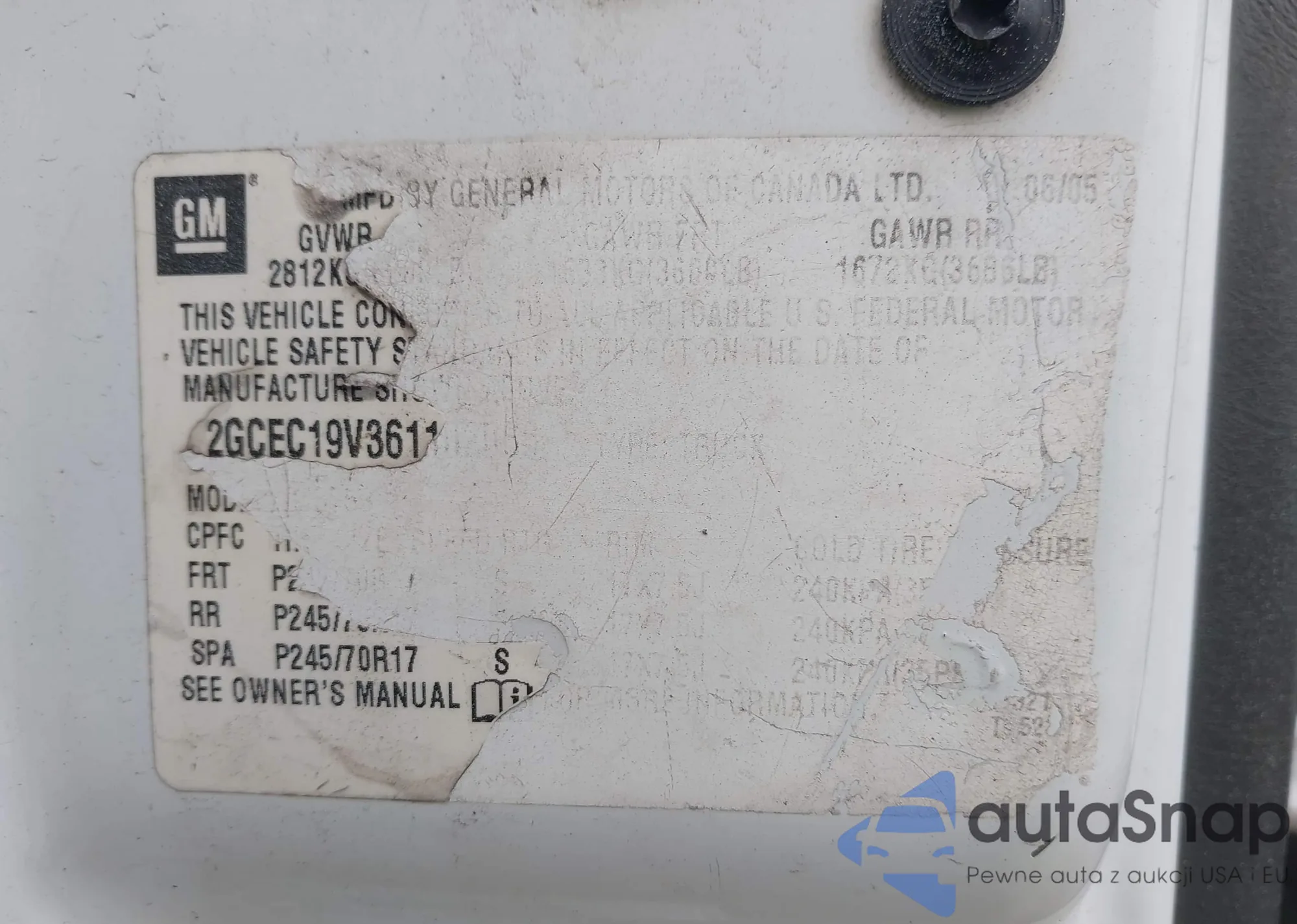 • VIN 2GCEC19V361102066