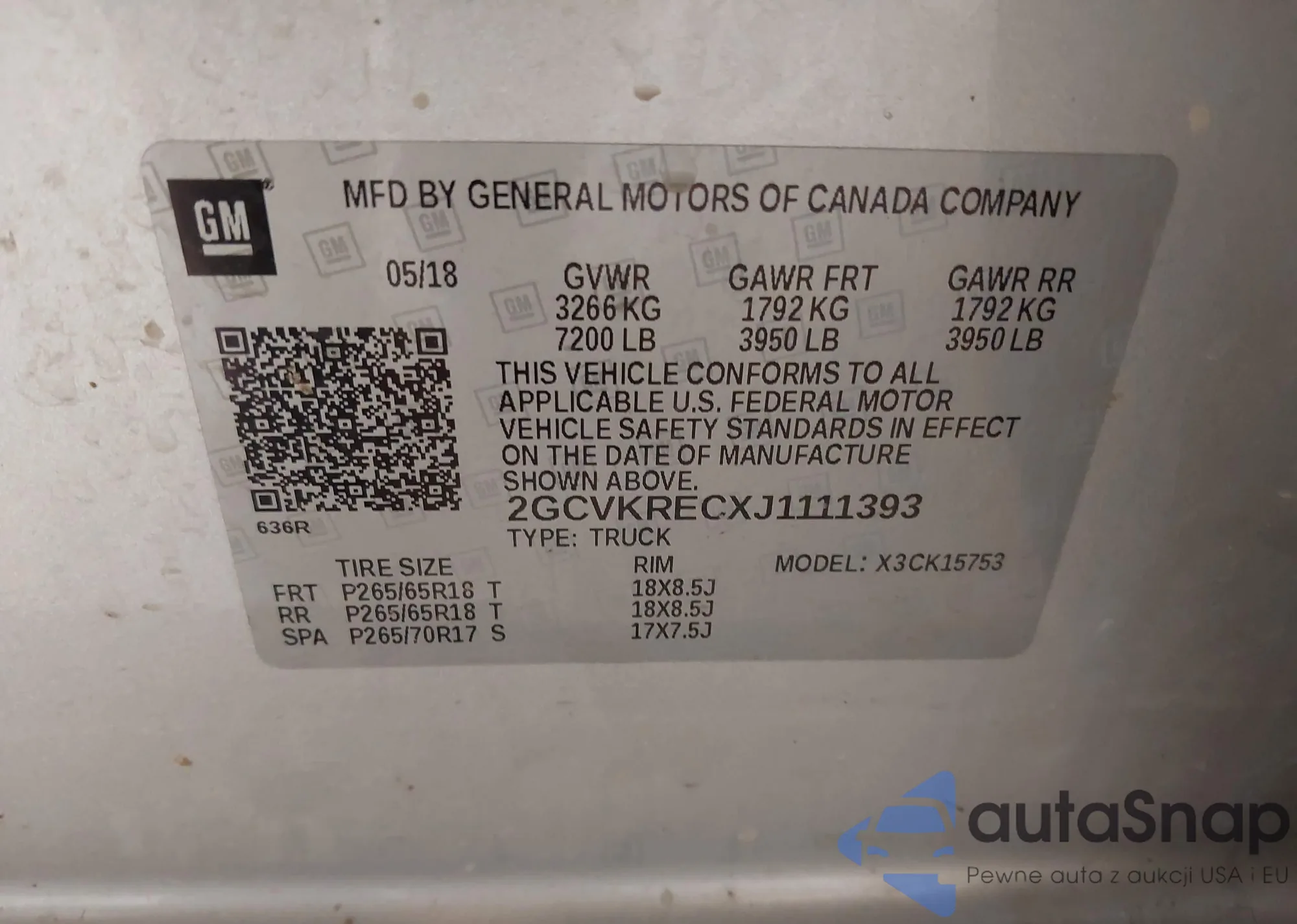 • VIN 2GCVKRECXJ1111393