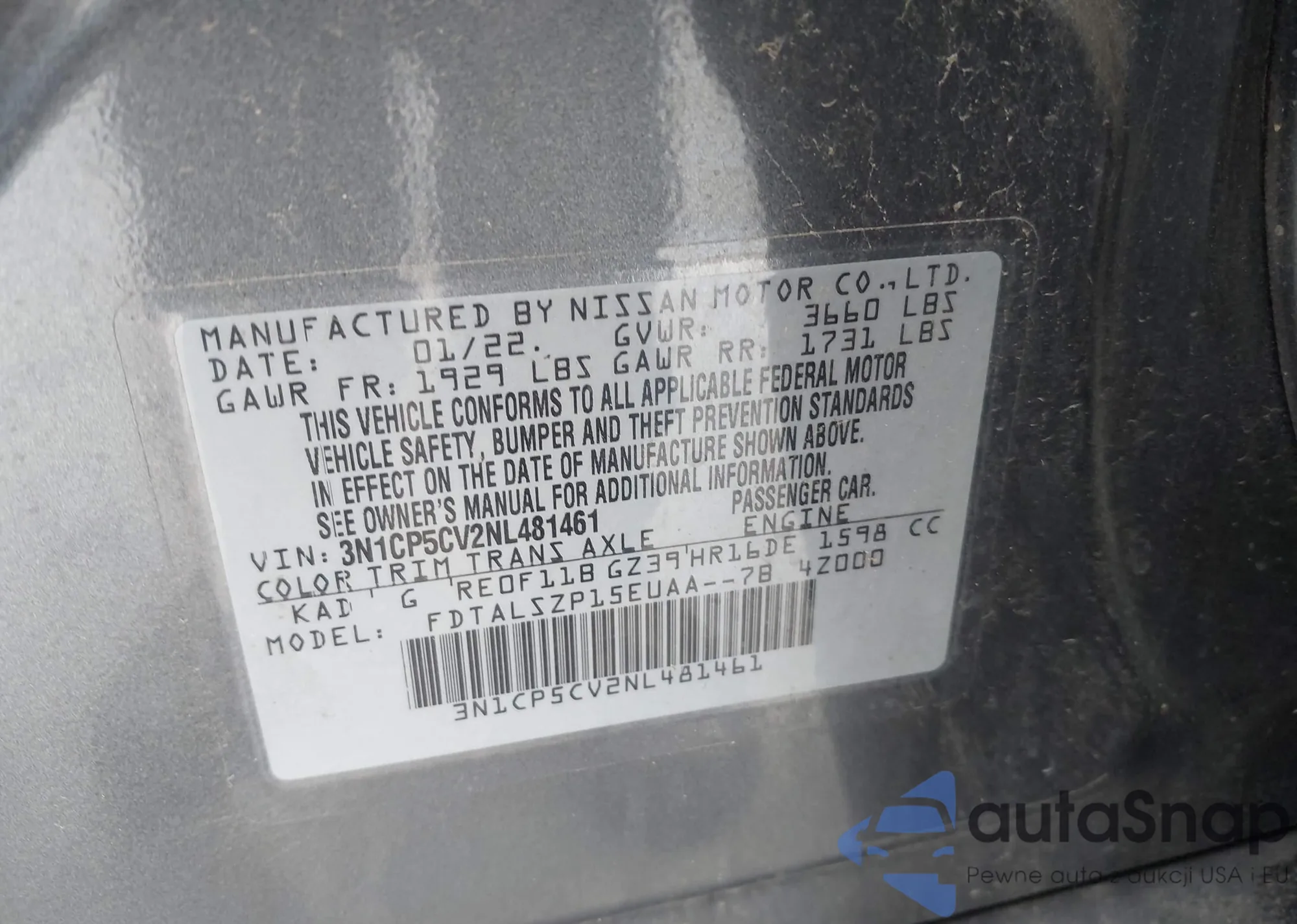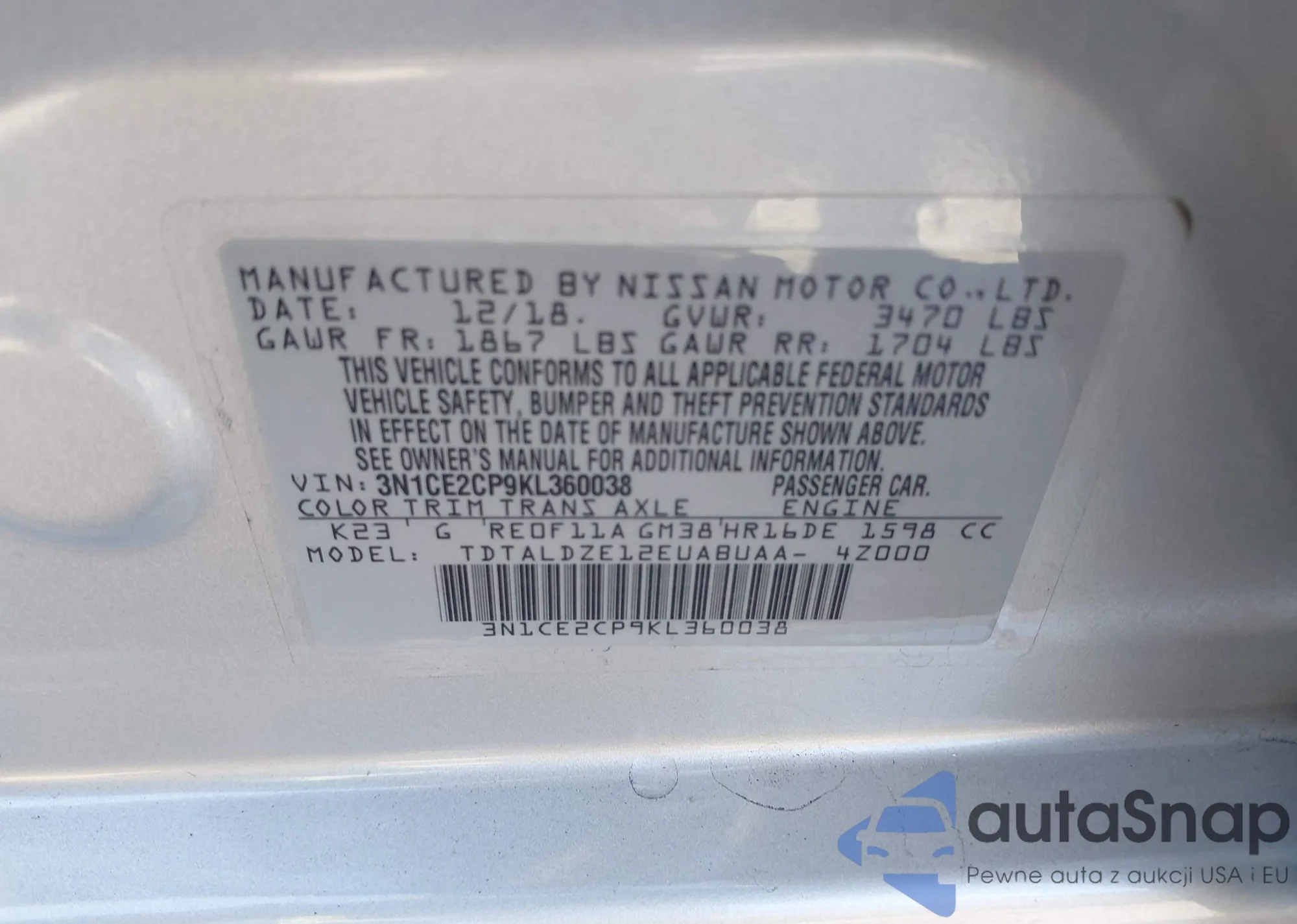 • VIN 3N1CE2CP9KL360038