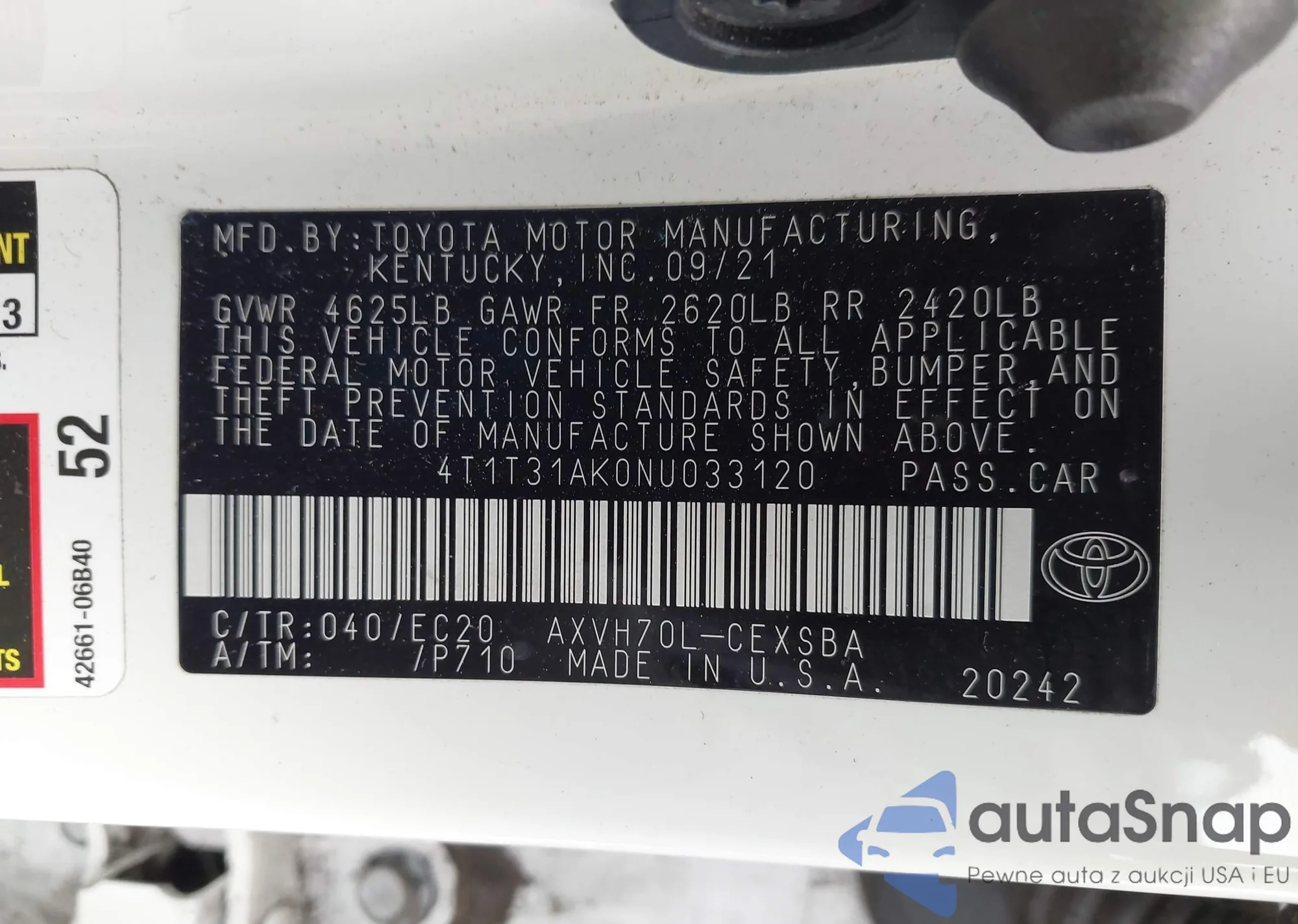 • VIN 4T1T31AK0NU033120