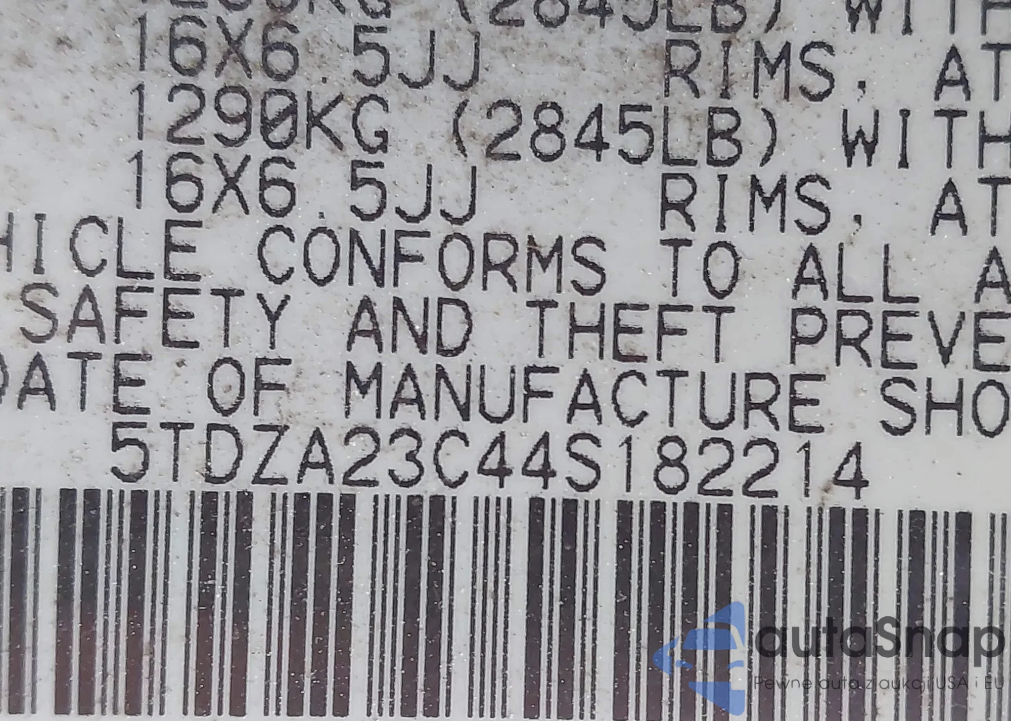 • VIN 5TDZA23C44S182214