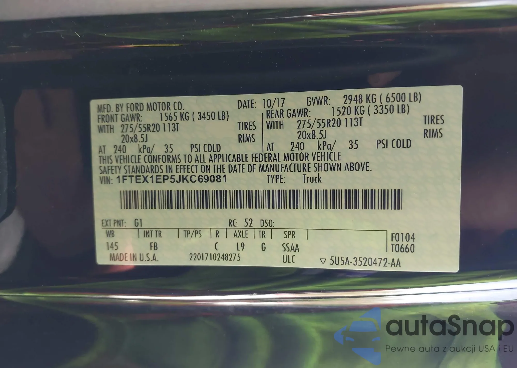• VIN 1FTEX1EP5JKC69081