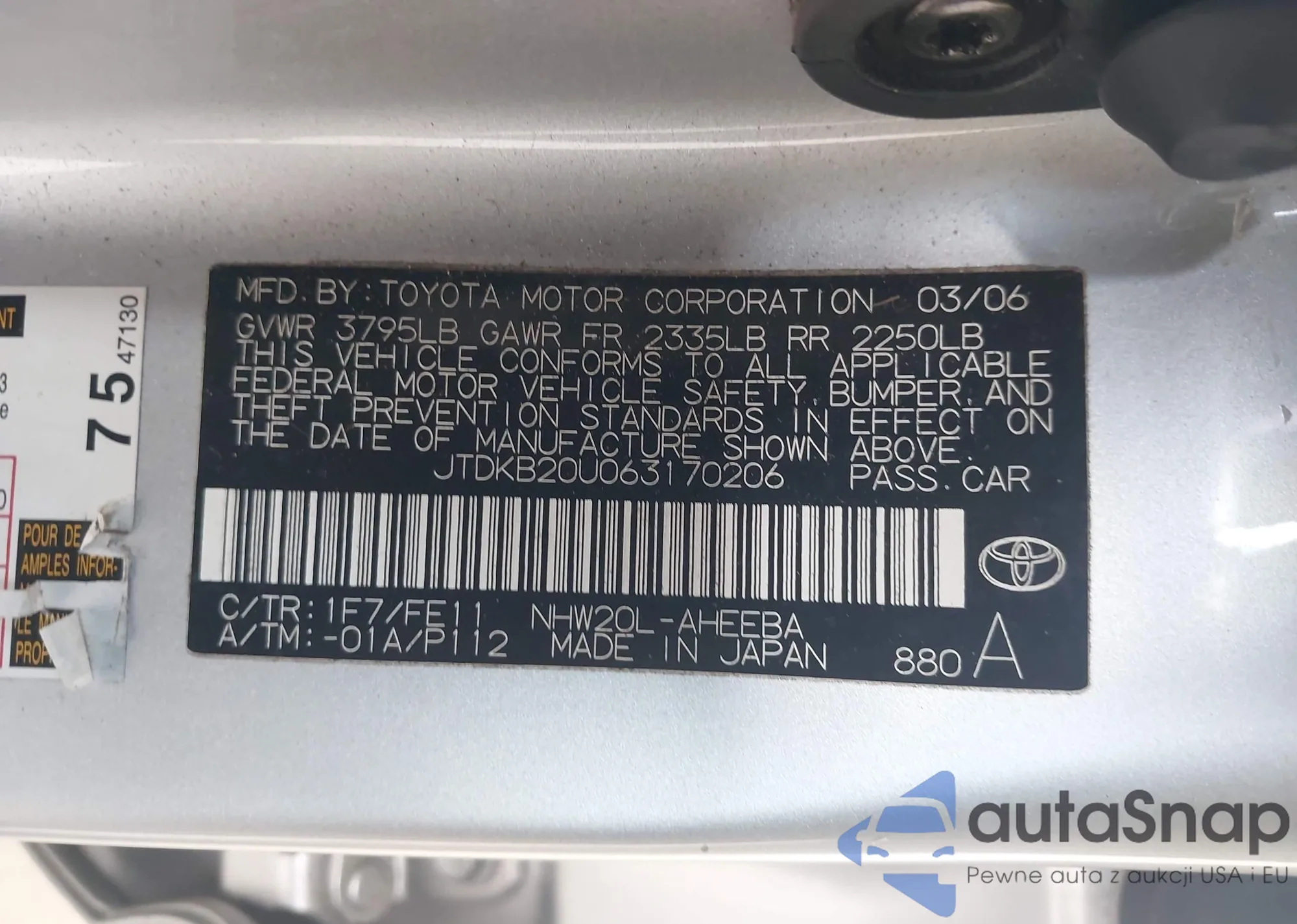 • VIN JTNBB46K873020942