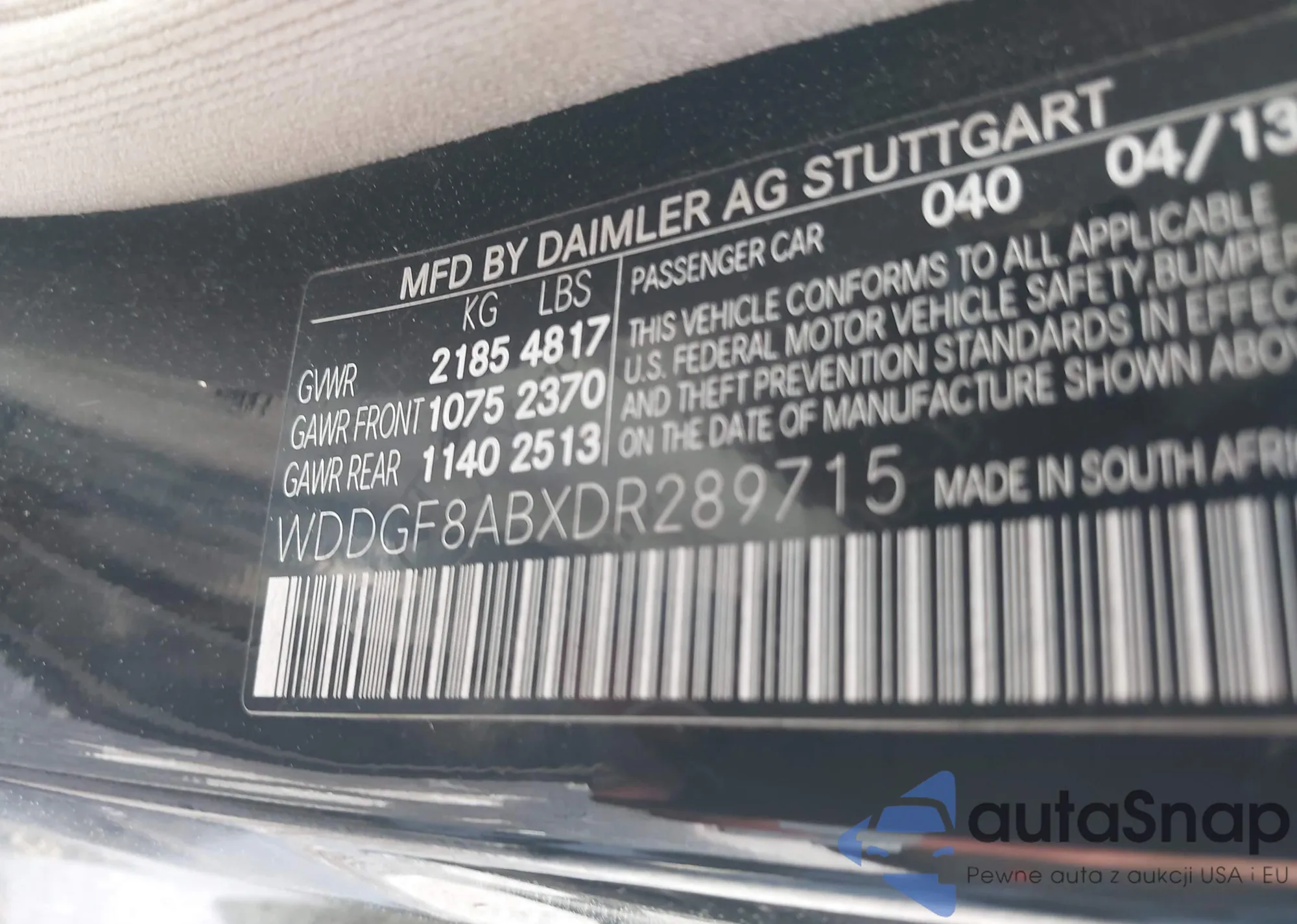 LOT: 42178866 VIN: WDDGF8ABXDR289715